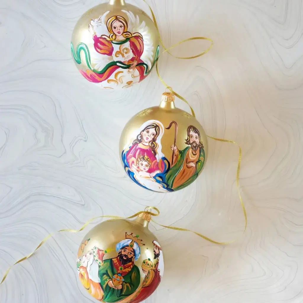 Make your tree a cherished collection of handcrafted treasures with the beautifully handpainted Nativity Ornament. Since 1983, Vietri has specialized exclusively in Italian handcrafted ceramics, stainless and pewter flatware, mouth blown glassware, lamps, urns and planters. Families of artisans with 3 or 4 generations of history create these special pieces using centuries-old techniques. The subtle color from a paintbrush and the curving stroke of the artist's hand are never repeated in quite the same way, making each piece truly unique.