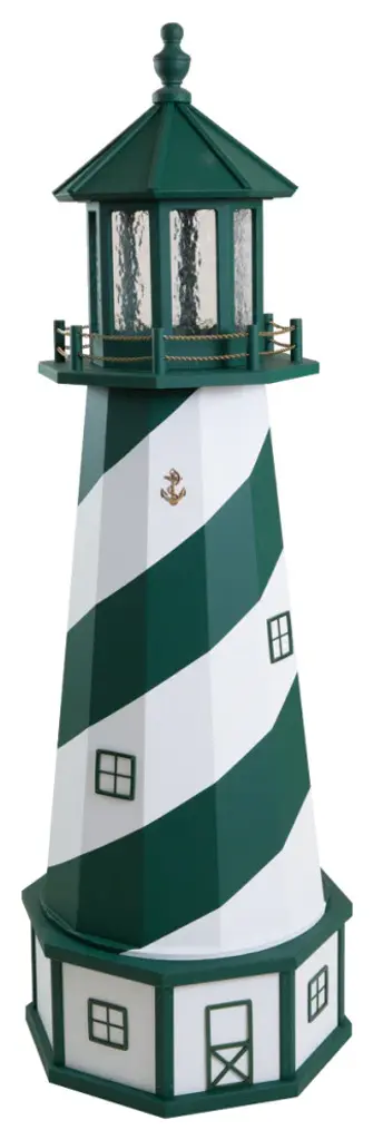 Outdoor Deluxe Wood And Poly Lumber Lighthouse Lawn Ornament, Green And White, 66 Inch, Standard Electric Light