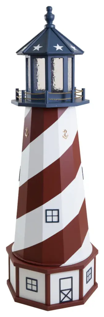Outdoor Deluxe Wood And Poly Lumber Lighthouse Lawn Ornament, Patriotic, 47 Inch, Solar Light