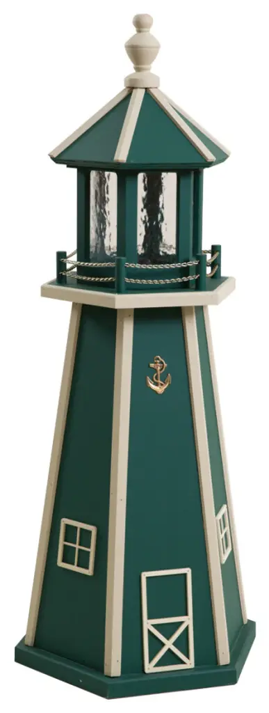 Create a gorgeous center piece in any garden or on any porch with this gorgeous Amish made lighthouse.Amish made in the USASolar powered light is a 3.2 volt rechargeableDigital colors may vary slightly from actual product color