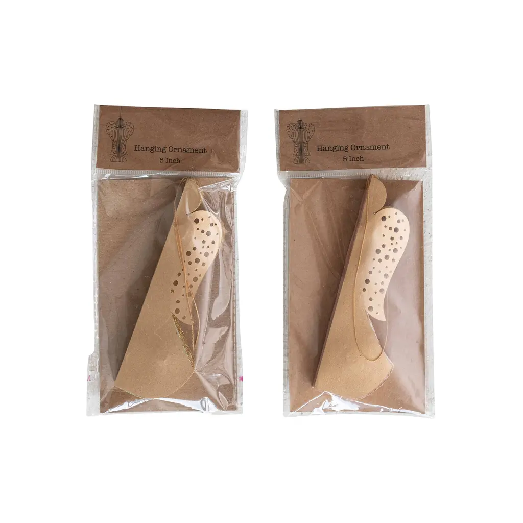 This paper folding honeycomb angel ornament set with star cut-outs and gold glitter is a heavenly and festive way to add some sparkle and grace to the home. The set includes 2 cute angel ornaments in green and red colors, each with a paper folding honeycomb design and a star cut-out that reveals a gold glitter background. The ornaments have a string loop for easy hanging. They are made of paper, and polyester string, making them lightweight and durable. Decorate the wall, ceiling, or Christmas tree, or use them as a gift or a toy, as this ornament set will bring a touch of beauty and elegance to any space. It also makes a great gift for friends and family who love angels or paper crafts.Features: