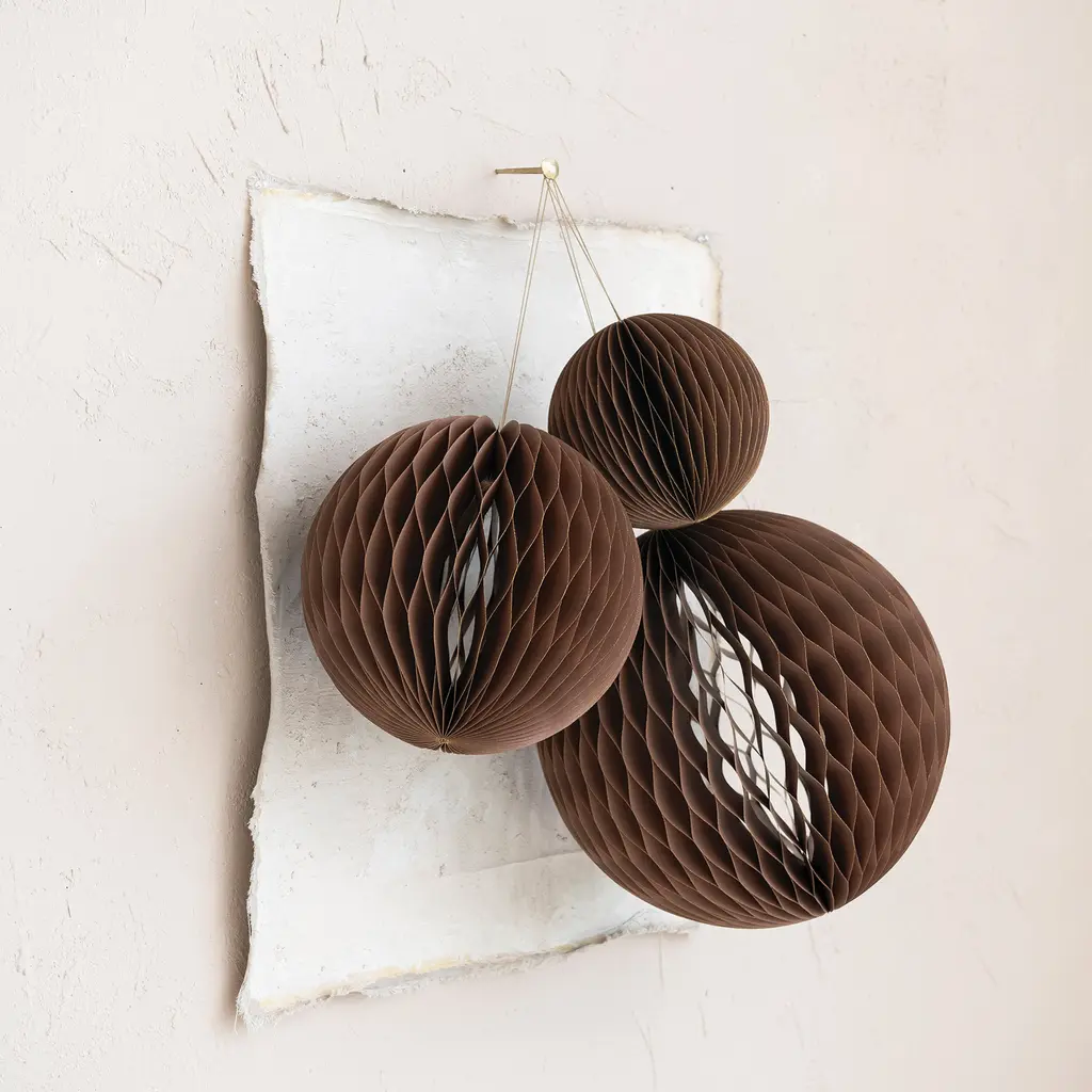 Paper Folding Honeycomb Ornaments With Glitter Edge, Set Of 3 - Brown
