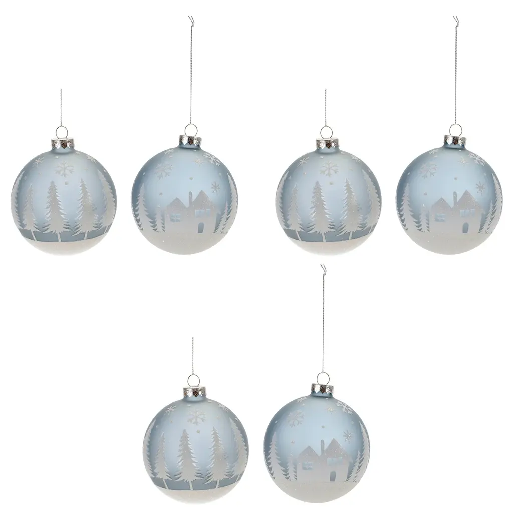 Patrin 4" Glass Ball Ornaments With Leaf Pattern, Set Of 6 - Glass - Black