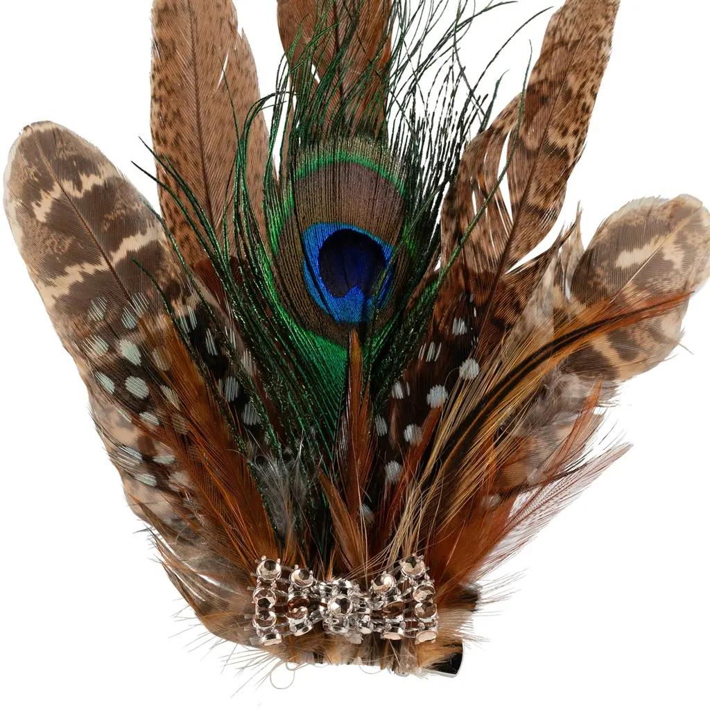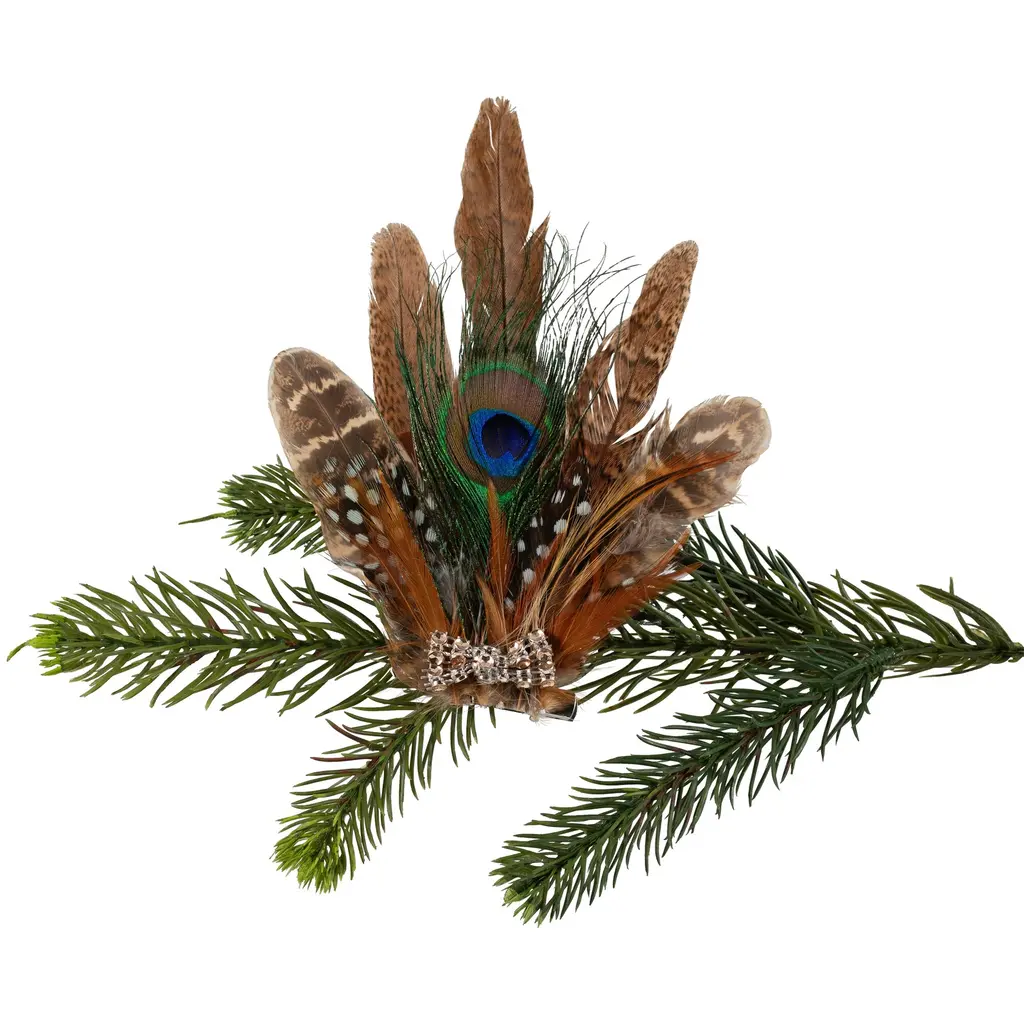 Peacock Feather Christmas Clip-On Ornament - 6" - Brown, White And Green - Felt - Brown