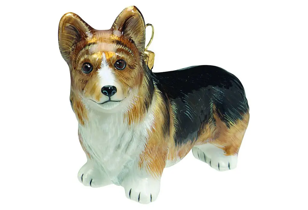 A charming addition to the tree, this Corgi ornament is handcrafted of mouth-blown glass and hand-painted by artisans in Poland.