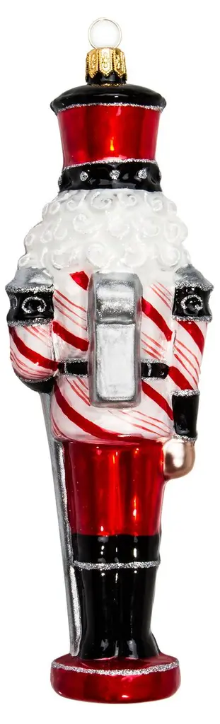 A festive addition to the tree, this nutcracker ornament is crafted of mouth-blown glass and hand-painted by artisans in Poland.