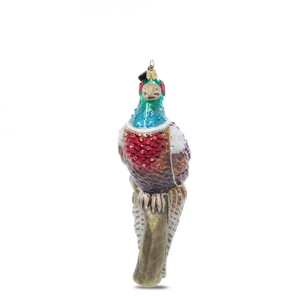 The Pheasant Glass Ornament is a captivating tribute to the iconic colors of this magnificent bird. Hand-blown in Poland, this exquisite ornament showcases the rich hues and intricate patterns of the pheasant, enhanced by sparkling European crystals. Add a touch of natural beauty to your holiday décor with this symbol of elegance and artistry.