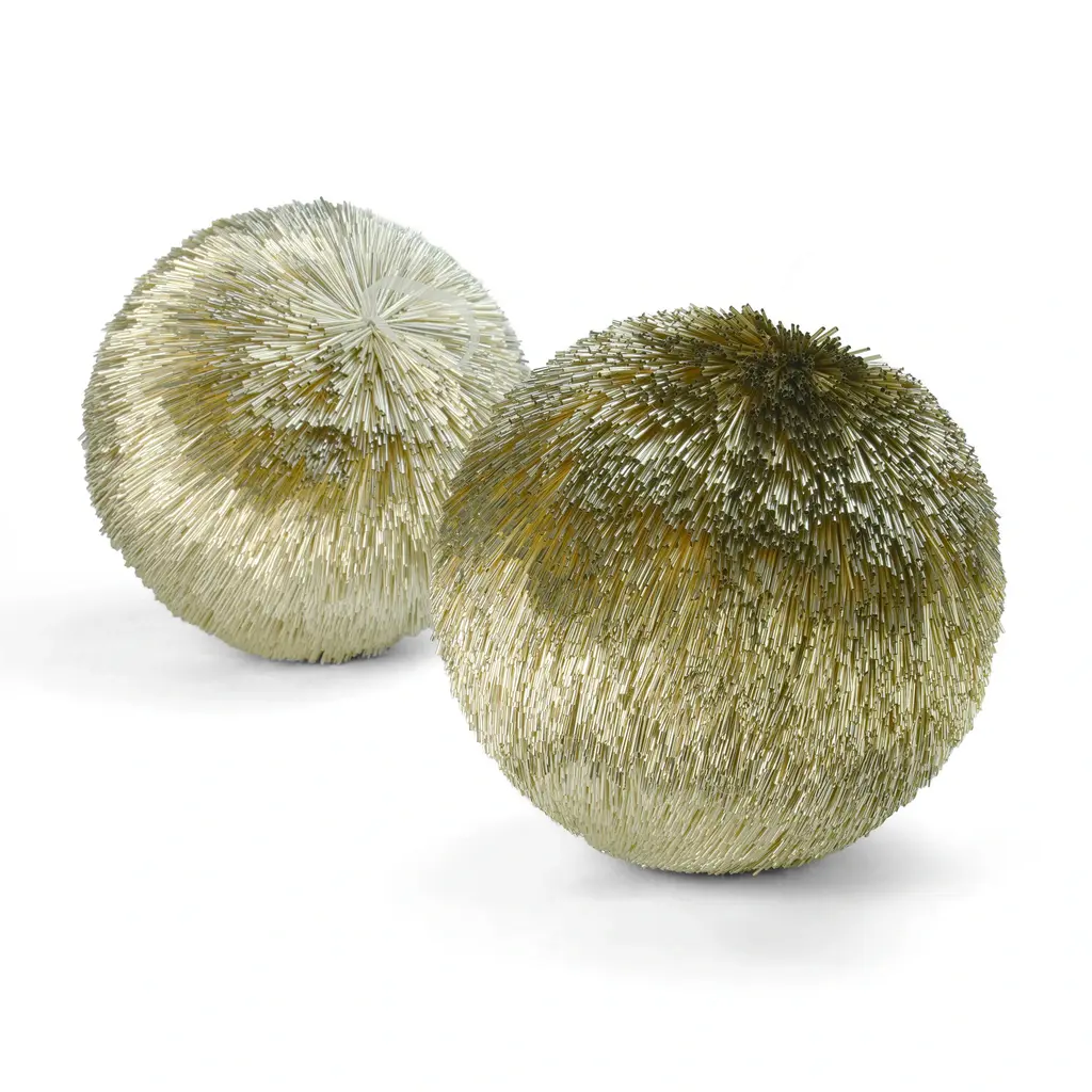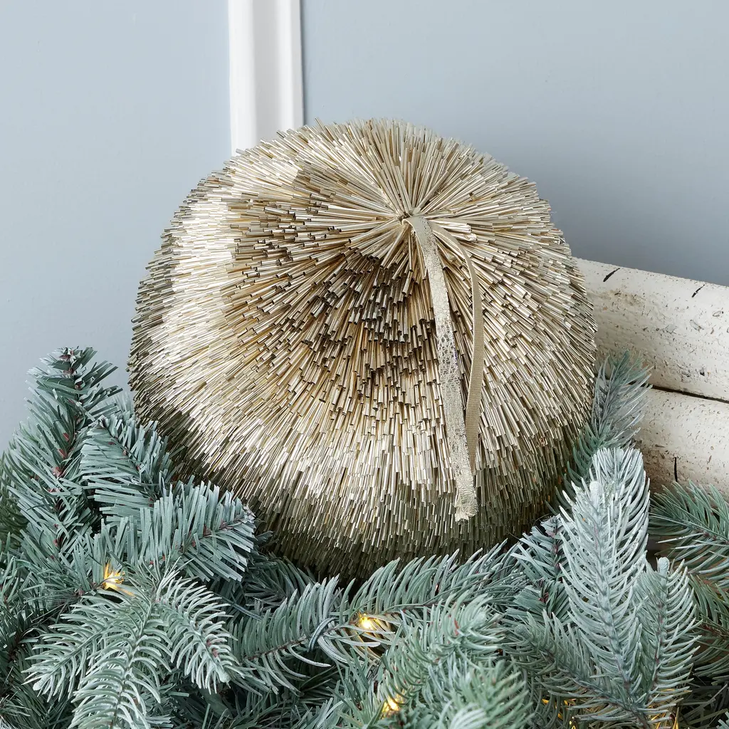 Add a creative and custom flair to your Christmas tree trimming with these distinctively designed holiday ornaments. Each decoration is constructed from miniature foil tubes layered over a soft inner core which create a shimmering reflective surface. Lightweight and shatterproof, each ornament is 8" in diameter and includes a hanging loop for display convenience. Ornaments are contained in a reusable storage box.