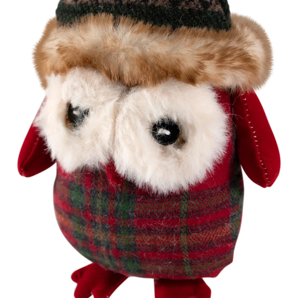 Plush Baby Owl In Plaid Christmas Ornament - 7" - Felt - Red