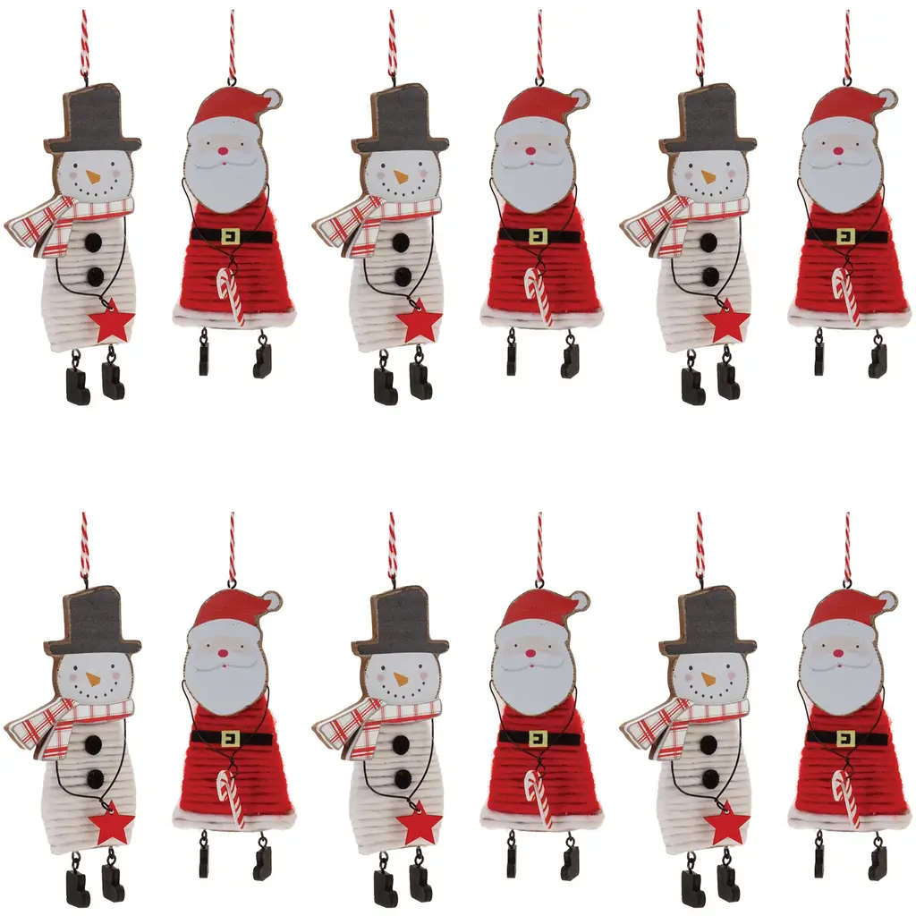 Plush Santa Ornament (Set Of 12) - 5.25" X 2.5" X 8" (L X W X H) - White/red