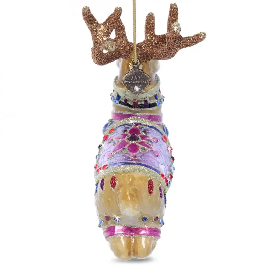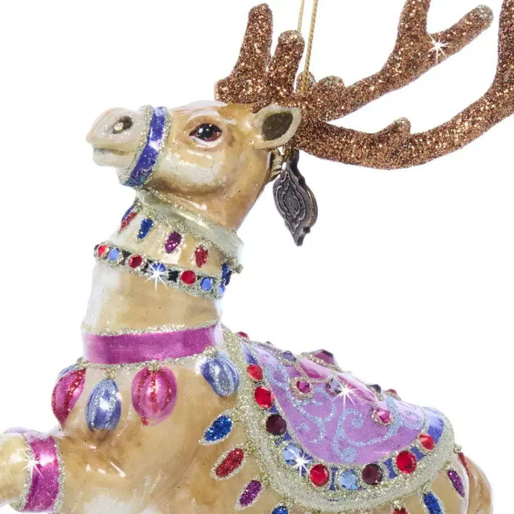 Originally launched in 2018, we are thrilled to re-introduce the Prancer Glass Ornament so that you can complete your stunning set of all nine reindeer! Step into a world of enchantment with the Prancer Glass Ornament, a delightful homage to Santa's reindeer. Handcrafted in Poland, this exquisite ornament features captivating lavender and rose hues, adding a touch of whimsical charm to your holiday décor. Adorned with intricate details and sparkling accents, it captures the essence of holiday elegance. Celebrate the magic of Christmas with this beautiful piece.
