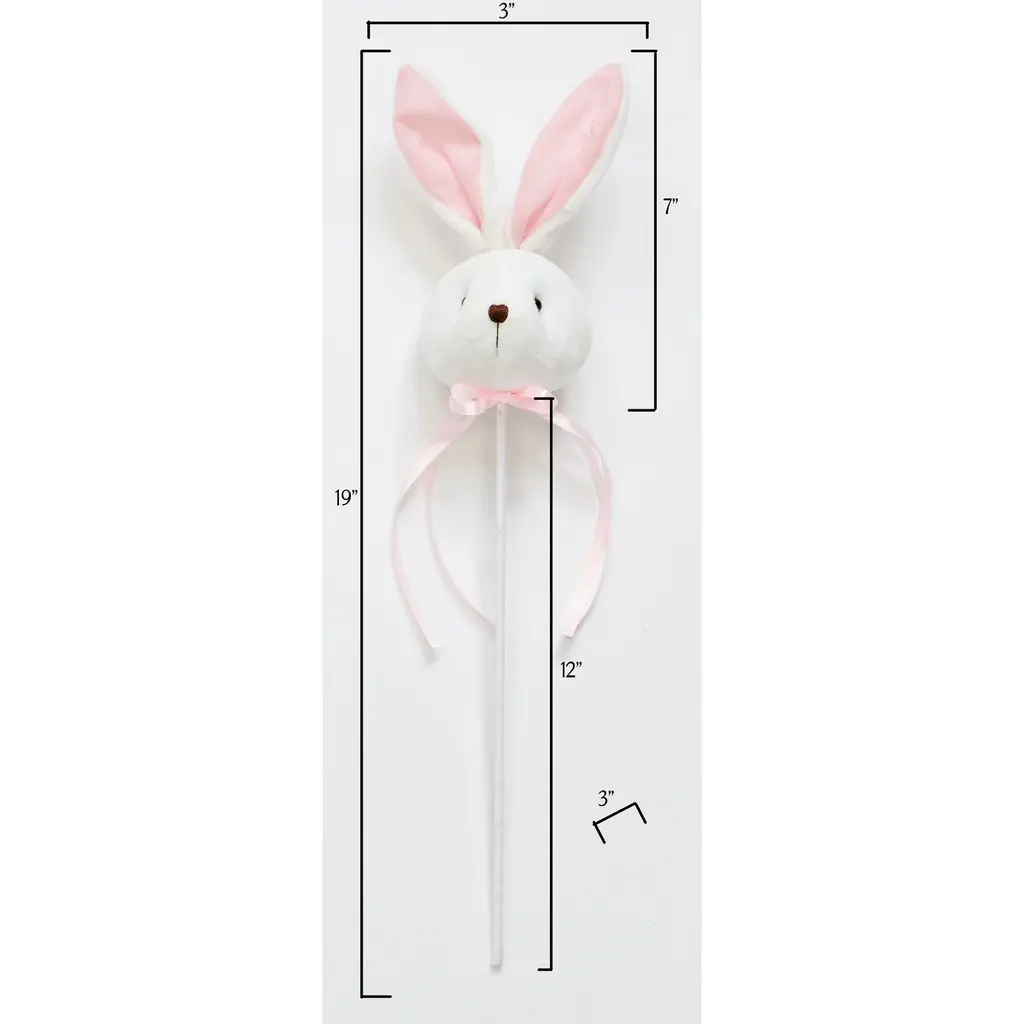 Primitive Stuffed Bunny Head Ornament W/pink & White Buffalo Check Bow - 6" High By 3" Wide By 1" Deep - Pink-White