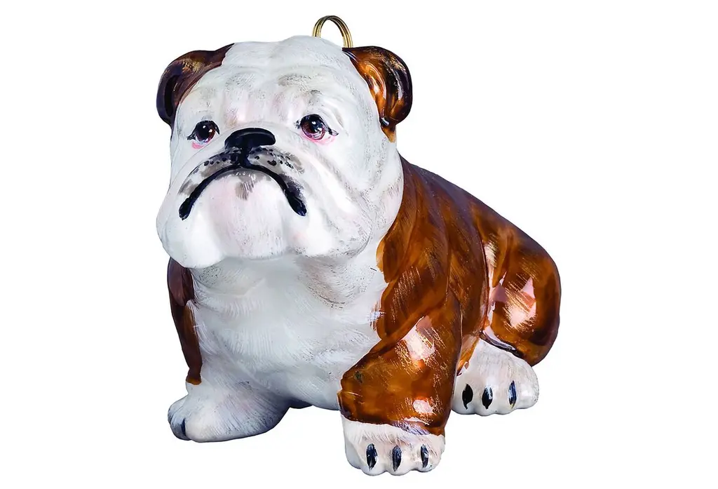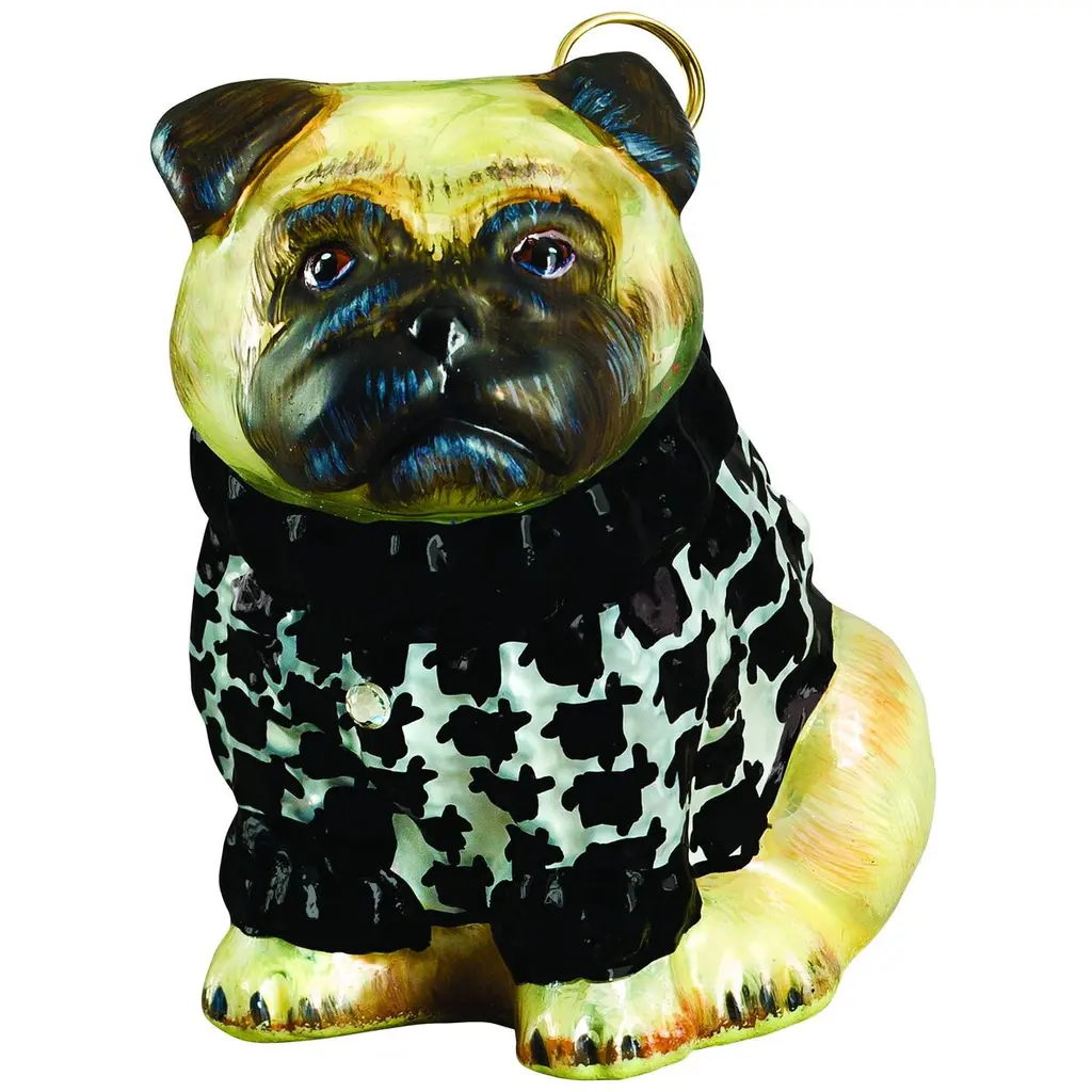 A charming addition to the tree, this pug ornament is handcrafted of mouth-blown glass and hand-painted by artisans in Poland.