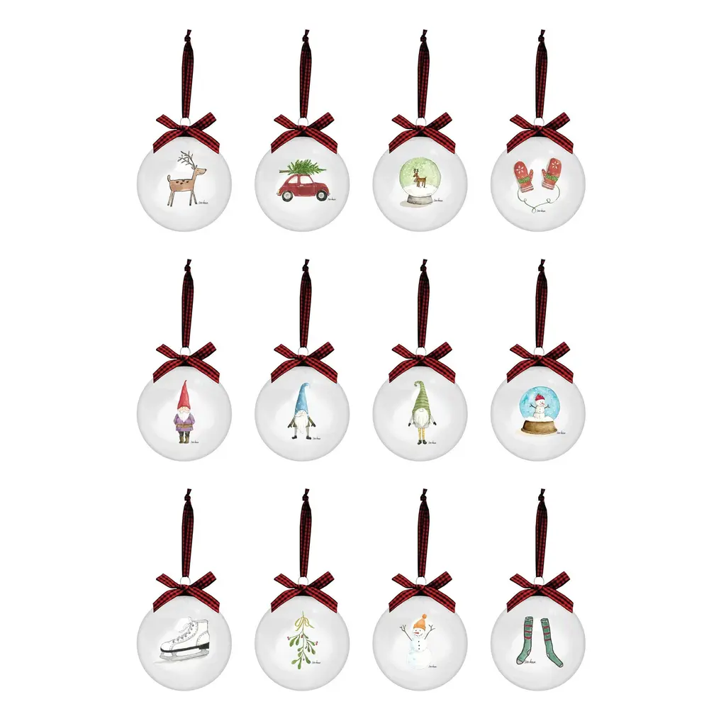 Rae Dunn Set Of 12 Christmas Ornaments - Red