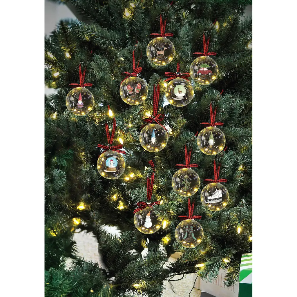 Decorate your home with the holiday spirit using Rae Dunn Set of 12 Christmas Ornaments made of high-quality glass. Each ornament measures 60mm (2.36") in diameter and features vibrant colors with superior definition and luster, adding joy to your home for years to come. The ornaments are made from one piece of molten glass, creating a seamless, immaculate surface finish. The ornaments come ready to hang with metal hooks and decorative red ribbons for a festive touch.Features:
