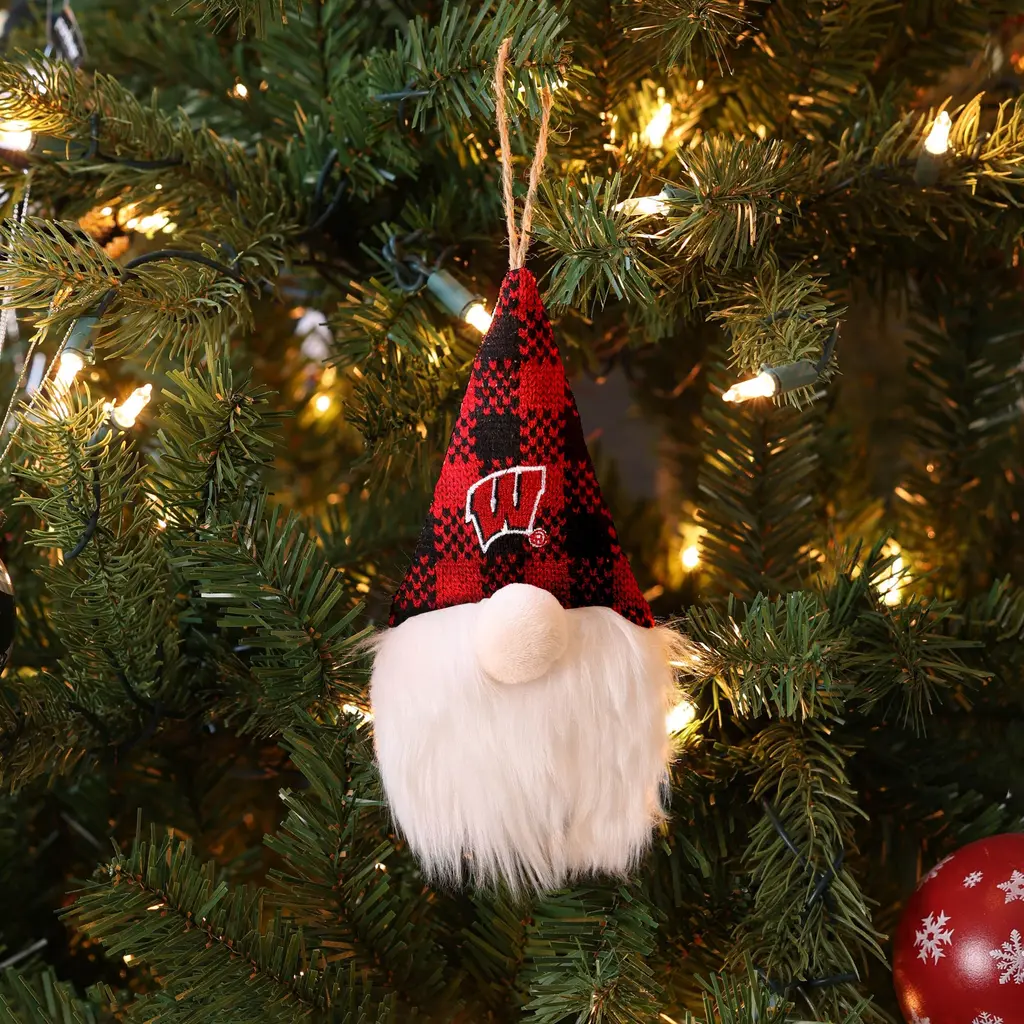 The Santa Gnome Ornament is a decorative plush Christmas gnome ornament with a long, fuzzy white beard with a round nose. The gnome features a tall pointed hat, made of red and black buffalo check fabric. Display this gnome hanging on a Christmas tree for a whimsical, rustic touch, or propped on a shelf, tabletop, or riser. Features