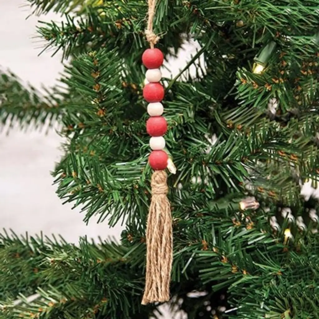 Specification:Features:Description: This is a decorative length of jute rope strung with alternating round wooden beads in a festive red and white color pattern. The bottom of the ornament features a jute tassel, and the top includes a jute loop to use as a hanger. Place this ornament on a Christmas tree or hanging on the edge of a frame or shelf for a great accent to Christmas décor in the home.