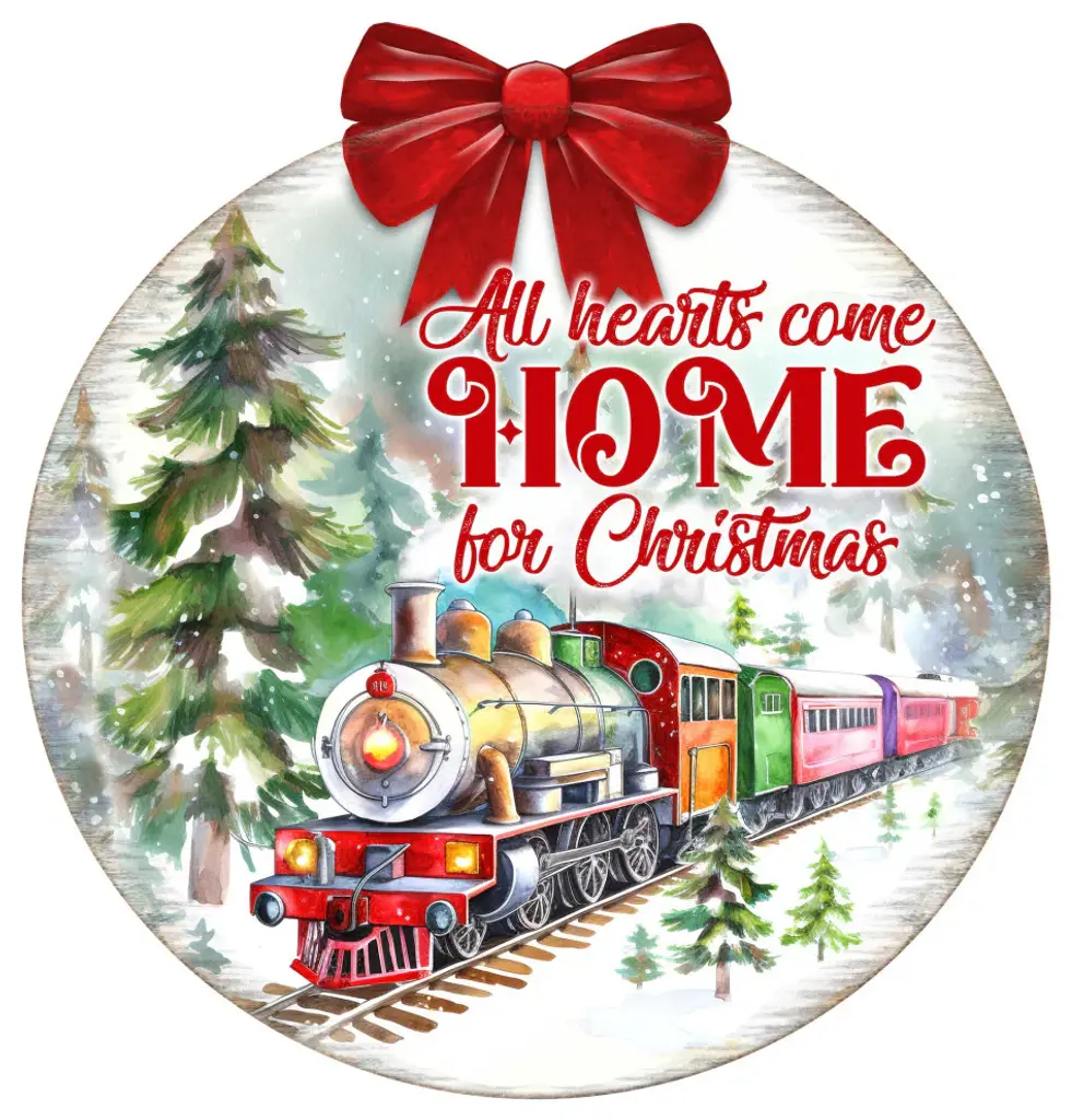 Measures 5 x 3 inches. Made of painted corregated metal with embossed accents. Flat on back, features include "All roads lead Home at Christmas," "Home for the Holidays" and "Christmas Memories". Set of three include one of each design. Made by Kurt Adler, imported