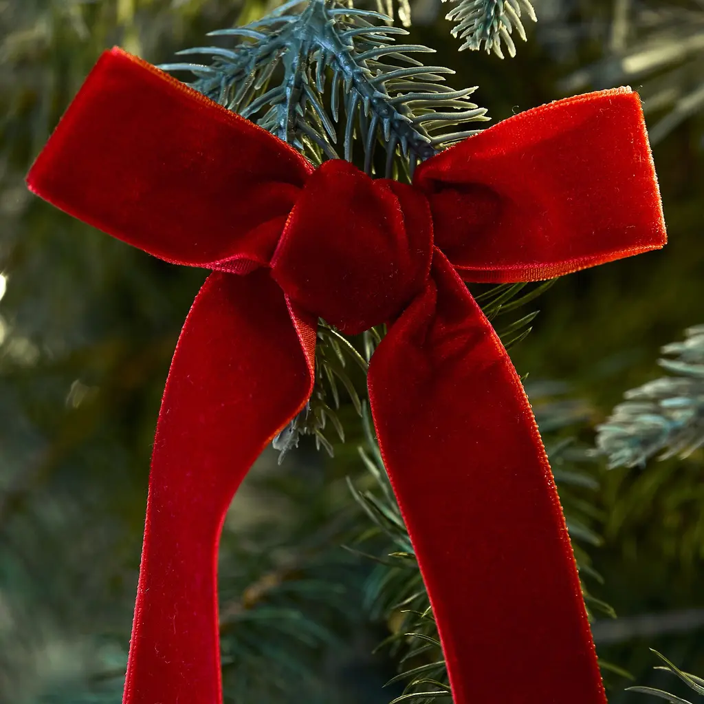 Adds instant festive cheer to trees. The elegant, goes-with-anything look of a seasonal bow. Soft velvet adds lovely texture to holiday decor. Clips right onto branches for easy decorating.