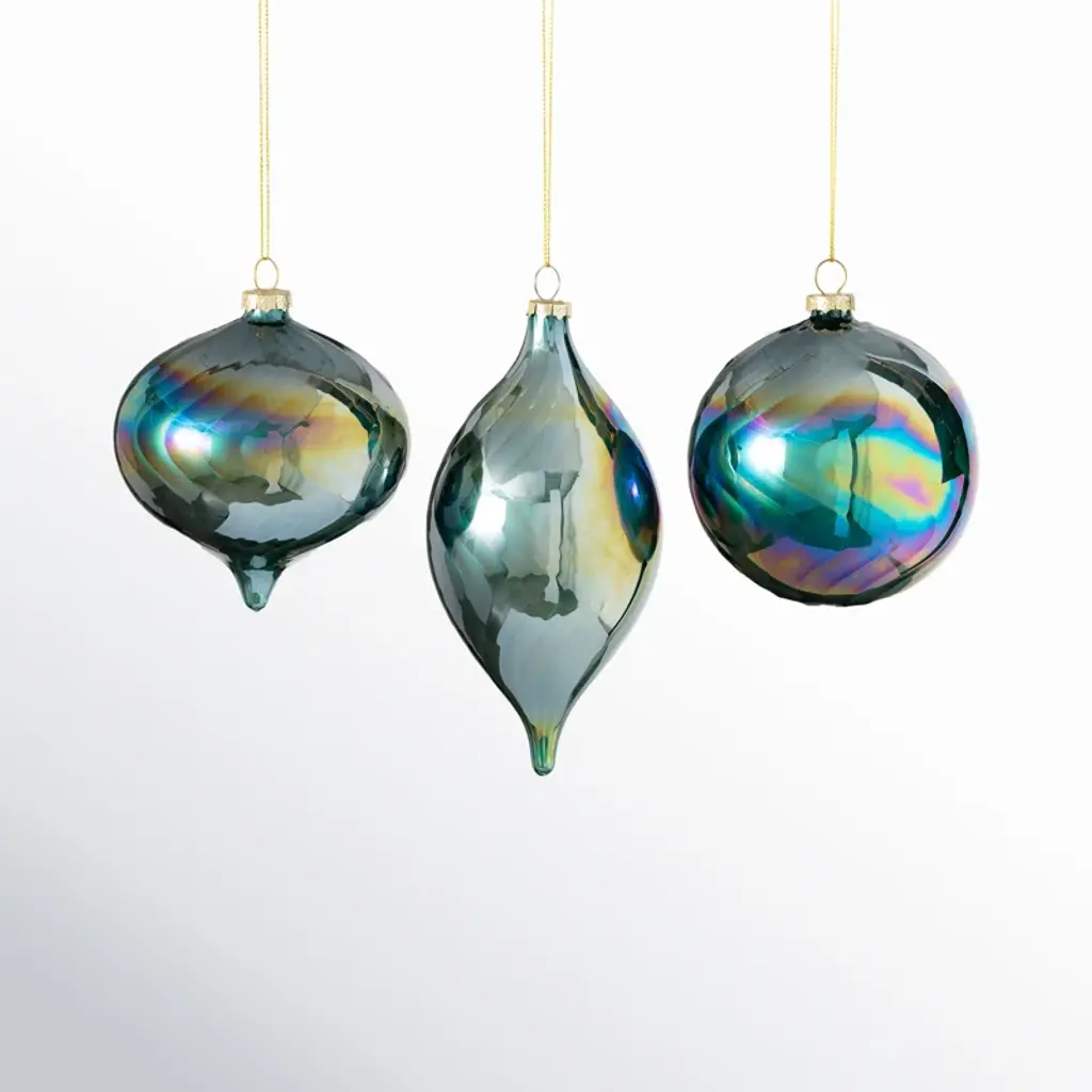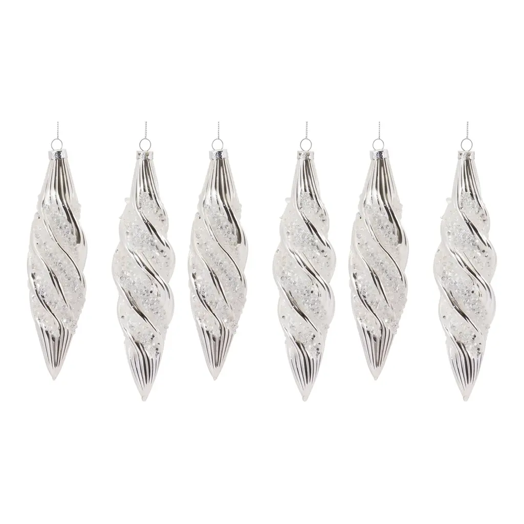 Ribbed Glass Drop Ornament (Set Of 6) - 2.75 X 2.75 X 10.5" (L X W X H) - Grey