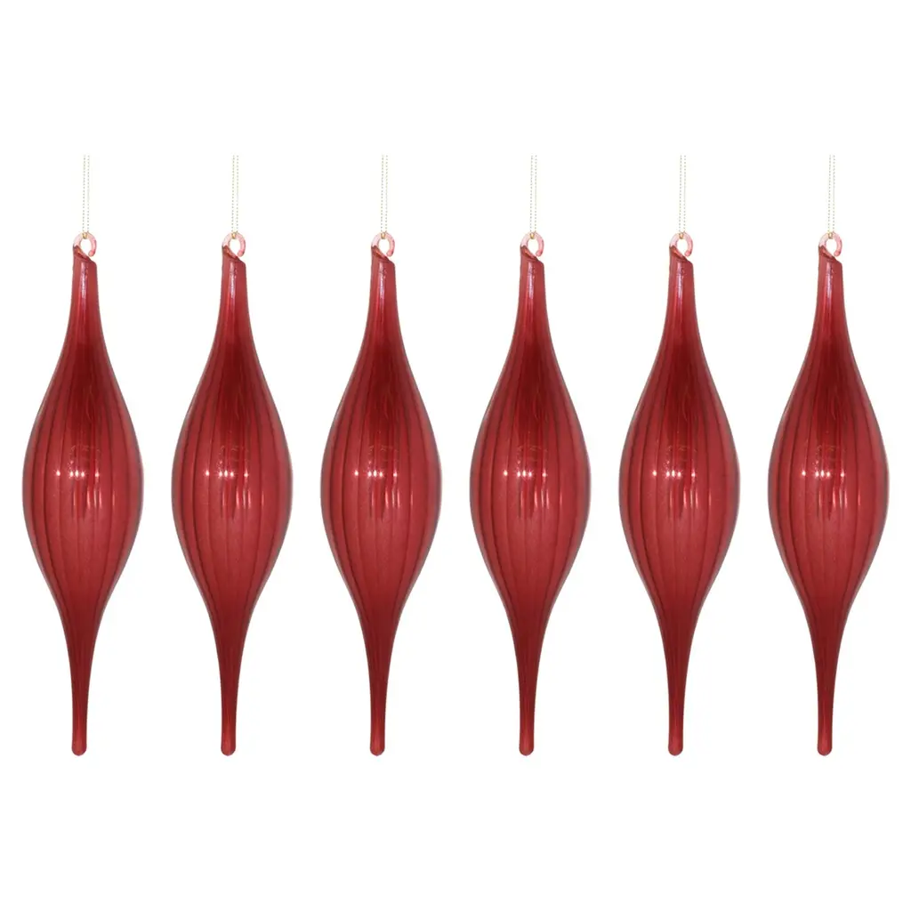 Description:Adorn your Christmas tree with this stunning set of Ribbed Glass Drop Ornaments. Featuring six pieces, the festive red/wintry grey tones paired with the ribbed glass design is the perfect combination to create a memorable display. The quality glass composition with delicate silver string hanger is sure to endure for seasons to come. Whether you're adding a touch of cheer to your home or gifting to a loved one, these ornaments will definitely bring holiday spirit to your home. Specification: