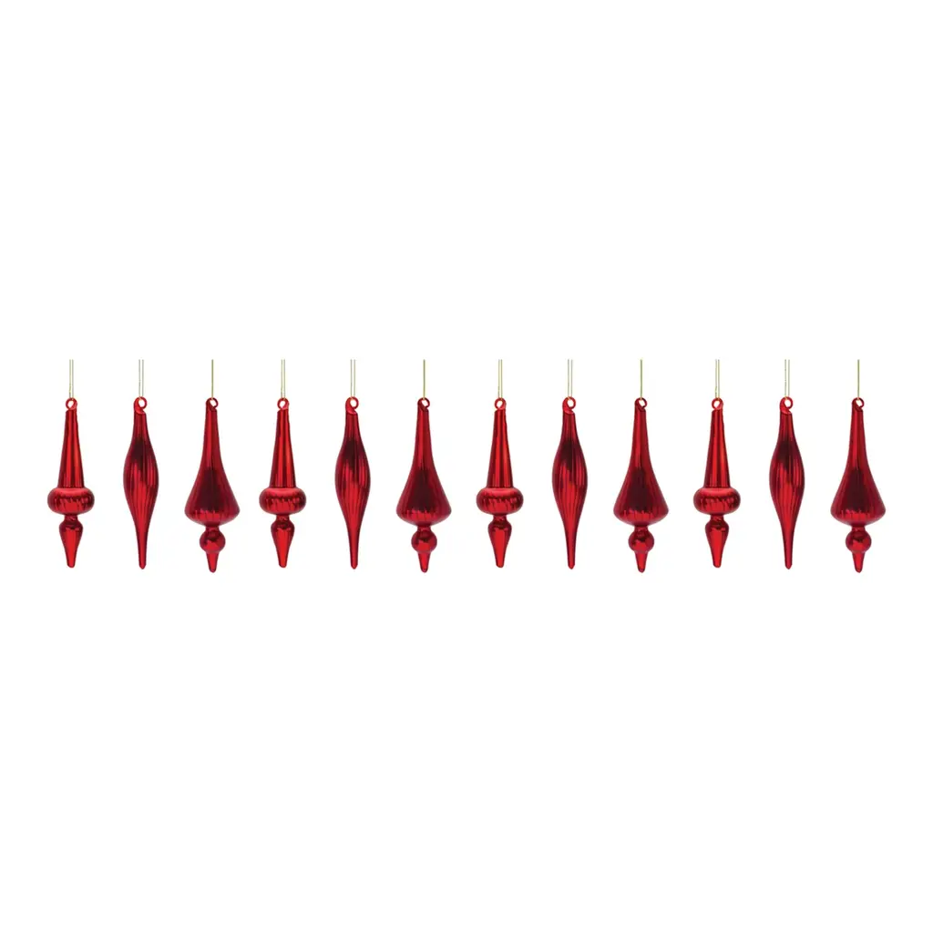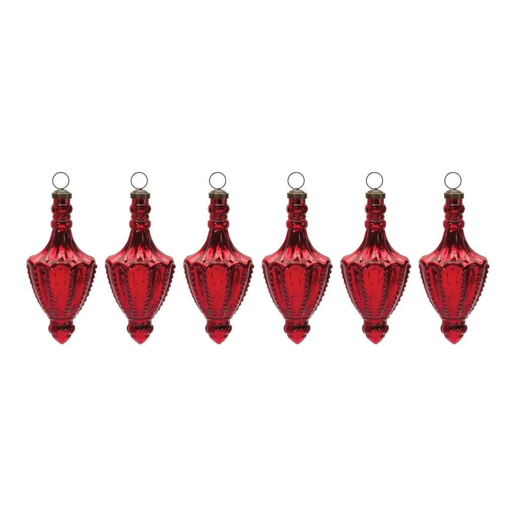 Ribbed Glass Drop Ornament (Set Of 6) - 2.75 X 2.75 X 10.5" (L X W X H) - Red