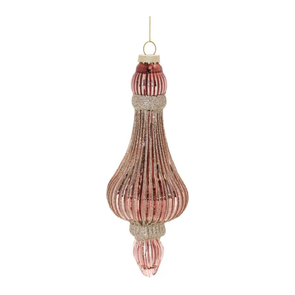 Add a touch of glamour to your holiday décor with these Ribbed Glass Drop Ornaments. Featuring soft pink and mauve tones with delicate glittered touches, these ornaments boast a modern drop design with a ribbed texture that catches the light beautifully. The delicate string hanger and gold ornament cap elevate the sophisticated look, making these ornaments perfect for your Christmas tree, wreaths, or garlands. Sold in a set of 6 with three assorted designs, they bring a chic and festive vibe to any seasonal display.