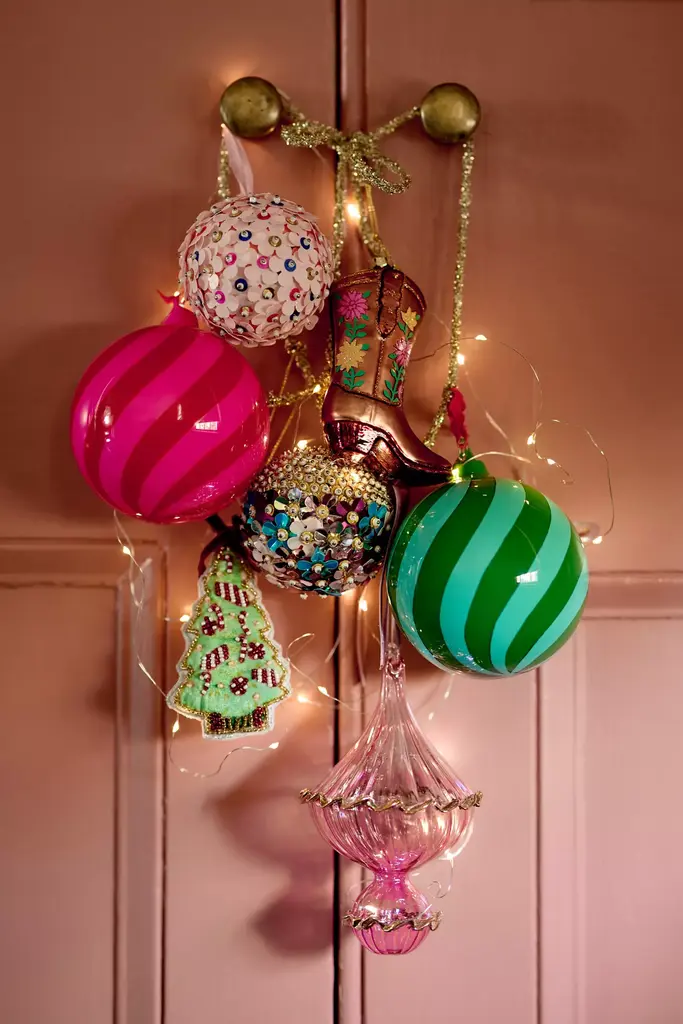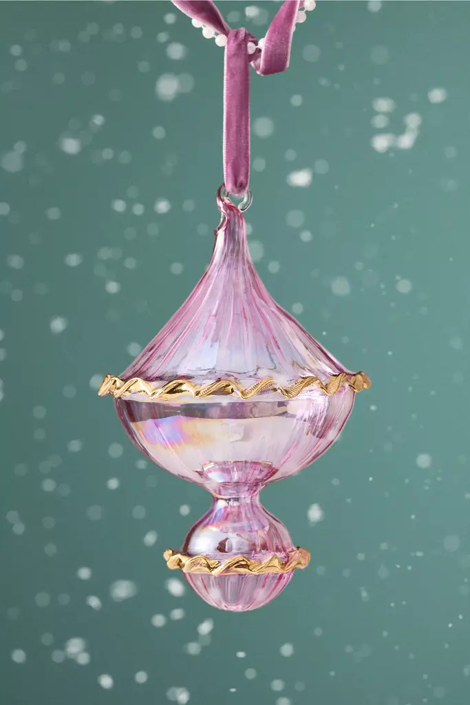 **May your trees be merry and bright!** Add a touch of vintage charm to your branches with this handpainted glass ornament.