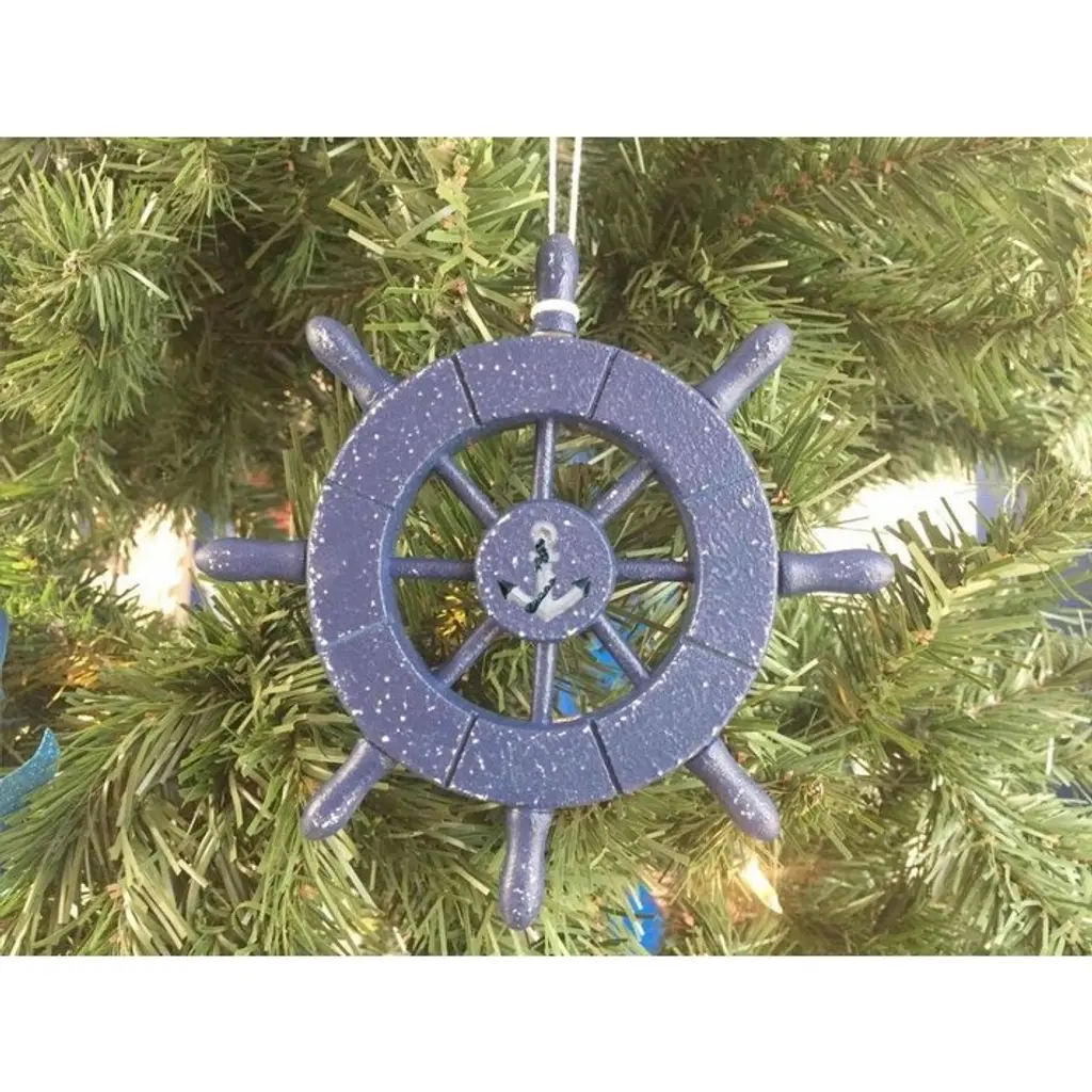 Rustic Dark Blue Decorative Ship Wheel With Anchor Christmas Tree Ornament 6" - 6" L X .5" W X 6" H - Blue