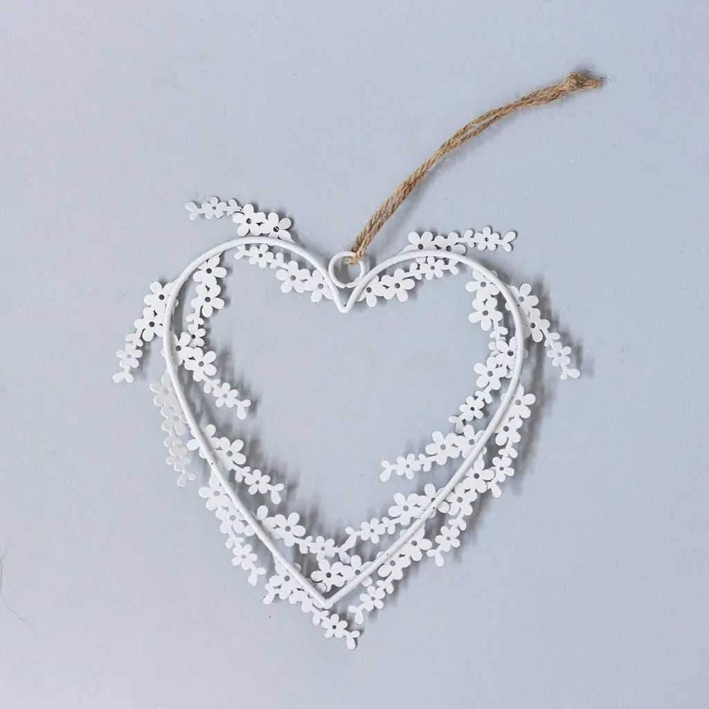 Rustic White Metal Heart Shaped Floral Branches Ornament - White