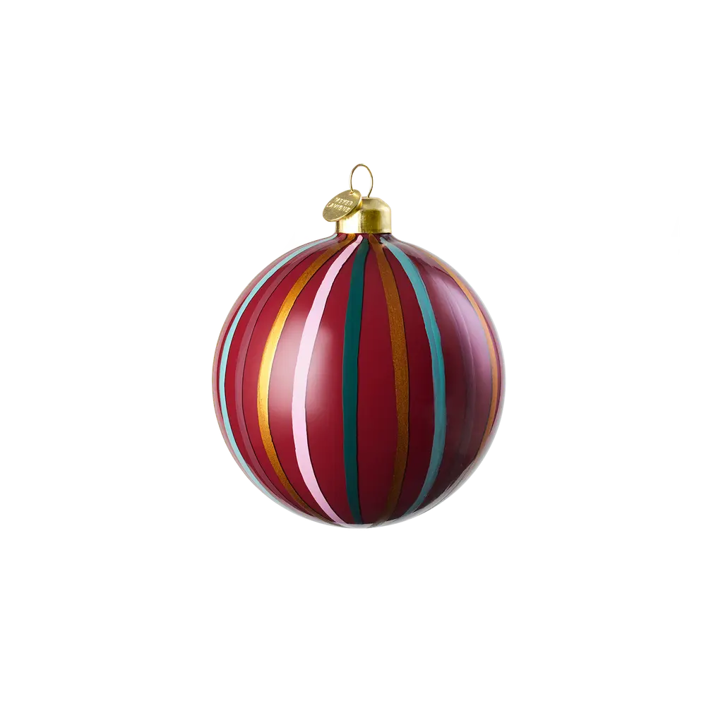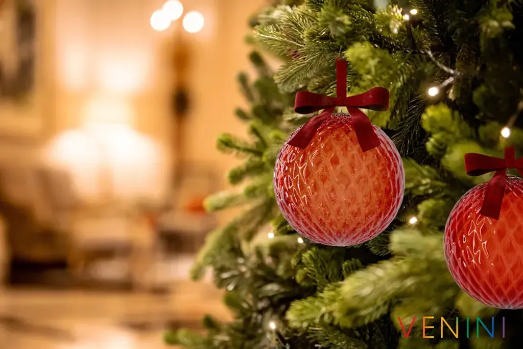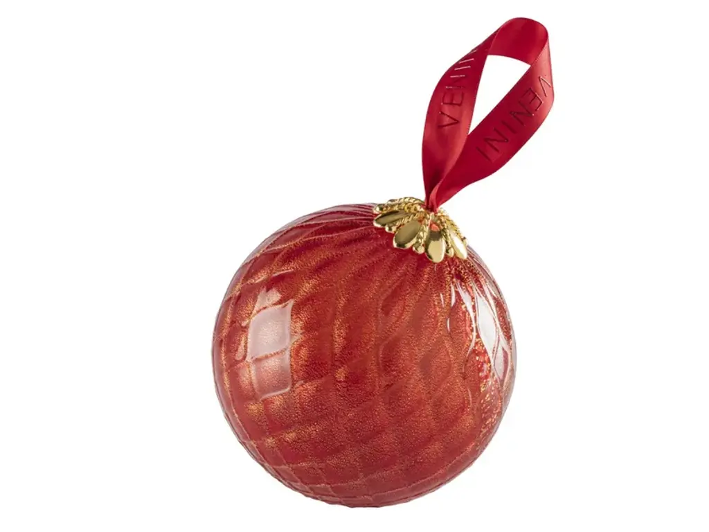 Santa is a handmade blown glass Christmas pendant with the traditional balloton processing with a metal mold, for a cross relief effect.Colors:Transparent Red “balloton”Transparent Red “balloton” with gold leaf