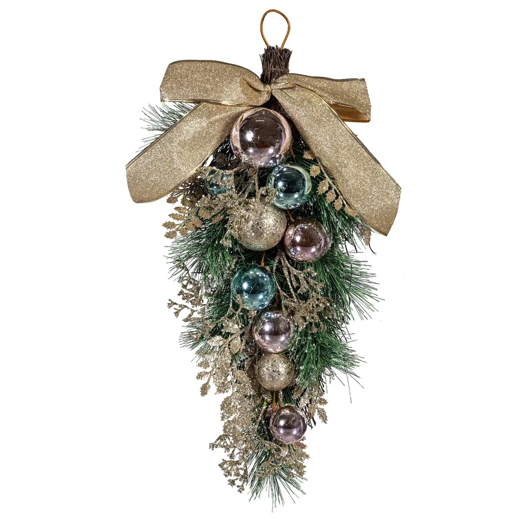 Elevate your holiday décor with the timeless beauty of this artificial swag. Crafted with vibrant ornaments, this stunning piece brings the warmth and elegance of the season into the home. Perfect for adorning doors, mantels, or as part of a festive centerpiece, this high-quality swag is designed to last for years to come. Bring joy, color, and holiday cheer into any space effortlessly with this classic touch of Christmas spirit.