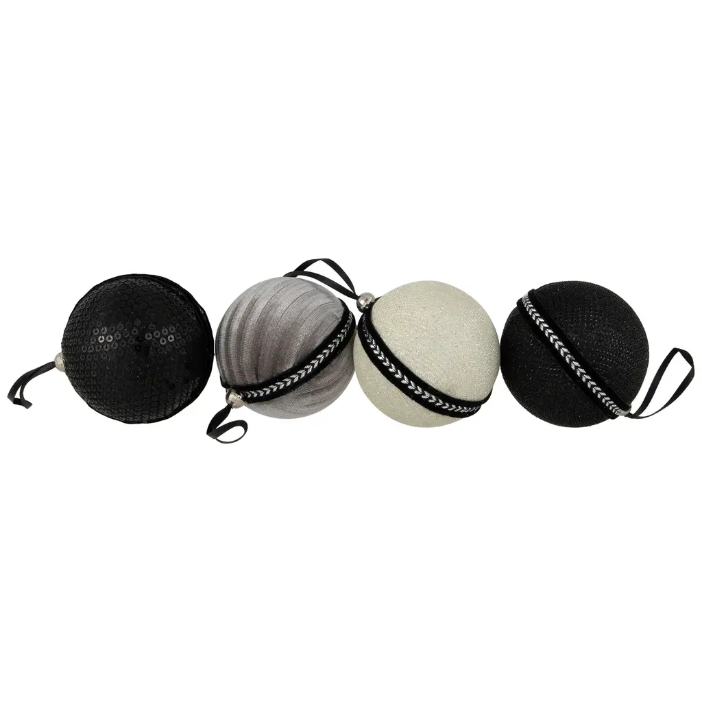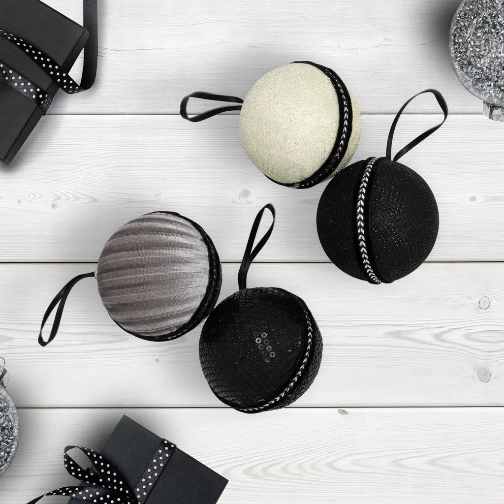 Sequin And Glitter Christmas Ball Ornaments With Ribbon - 2.75" - Black - Set Of 4 - Black