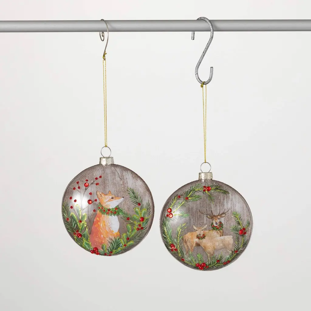 Add a touch of nature-inspired charm to your Christmas decor with this set of 2 Cardinal ball ornaments. Each ornament features a clear glass ball with glitter accents showcasing two beautiful red cardinal birds perched on a branch. These stunning ornaments will sparkle and shine on your tree bringing a festive and joyful ambiance to your holiday season. Made with high-quality materials these ornaments are sure to be cherished for years to come. They also make a wonderful gift for bird lovers and anyone who appreciates the beauty of the natural world. Features: Set of 2 ball Christmas ornaments. Clear glass ball design with a textured surface that adds a unique visual and tactile element. Feature glitter accents which add a touch of sparkle and shine to the overall design. Designed with a cardinal bird theme which is a popular symbol of the winter holiday season. Equipped with gold ornament caps. Ready to hang on gold cords. The ornaments come in a protective package ensuring they arrive in perfect condition and are ready for display. Recommended for indoor use only. Dimensions: 4" diamater. Materials: glass