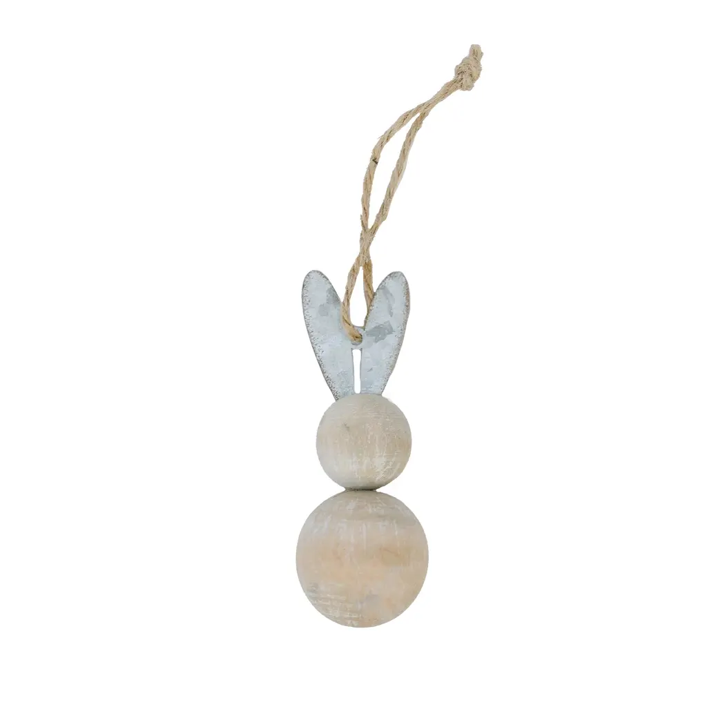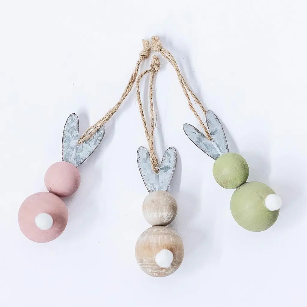 Set Of 3 Assorted Colors Wooden Bunnies With Metal Ears Ornaments - Multi