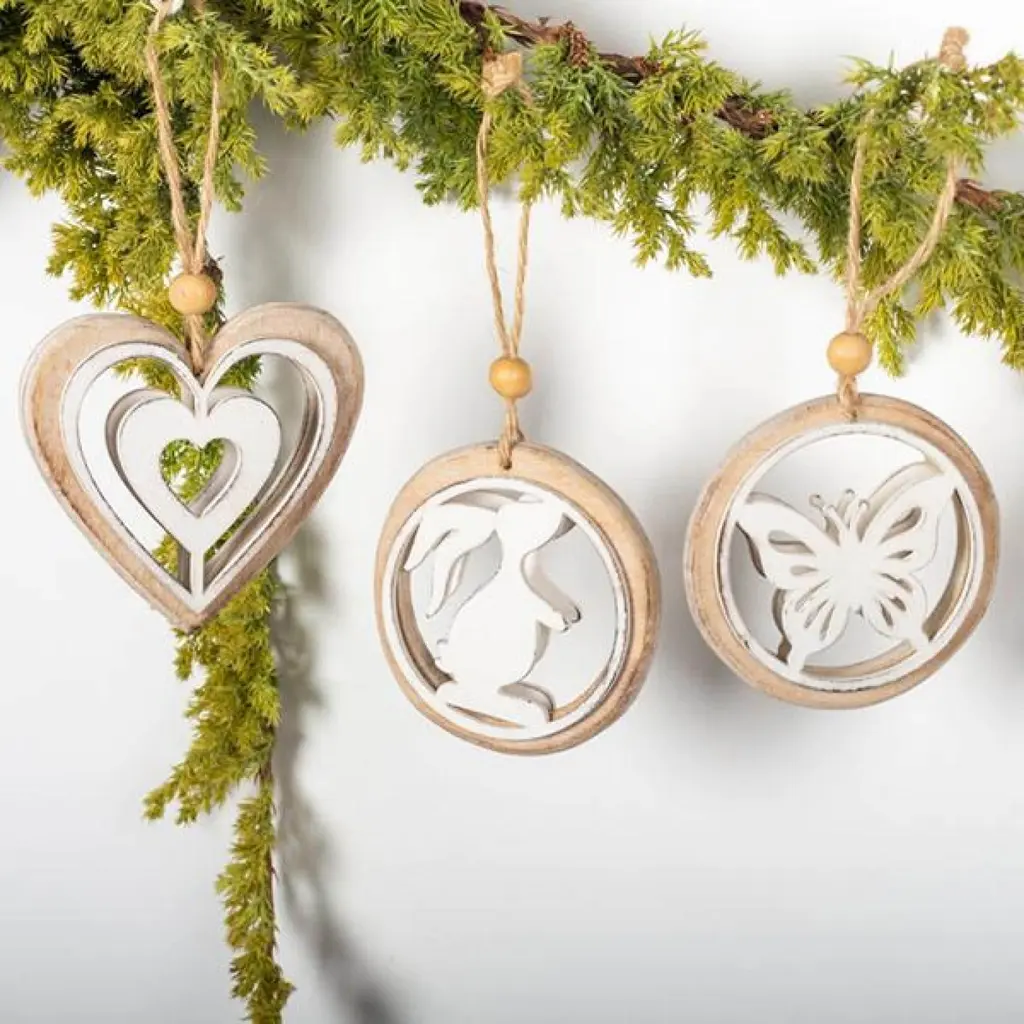 Set Of 3 Assorted Style Wooden Hanging Ornaments - Multi