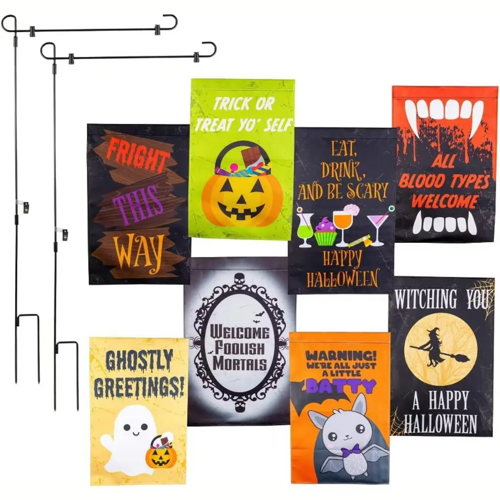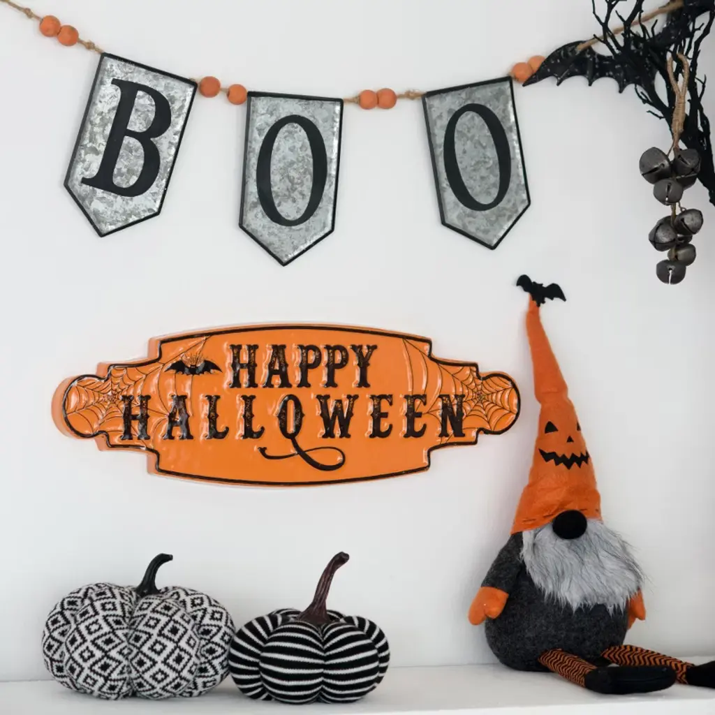 Specifications:Description:The Eat Drink and Be Scary Tag Ornaments are a set of three decorative wooden cutout tags with a white finish and pennant banner shape. One tag reads “Eat Drink and Be Scary” in black lettering, complete with a black bat graphic. Another tag reads “Let’s Get Smashed” in black lettering, featuring a black pumpkin graphic. A third tag reads “Gettin’ Sheet Faced” in black lettering, finished with a grey ghost graphic. The top of each ornament includes a knotted string hanger to use for display, perfect for placing on a tree, knob, or frame, bringing a humorous and festive touch to the home during the Halloween season. Each tag measures 4” high by 1.75” wide.