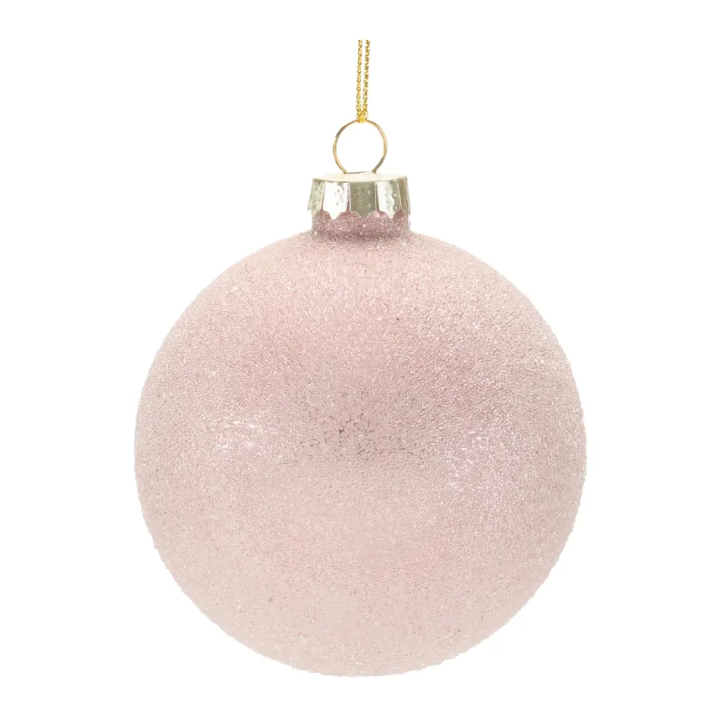 Set Of 4 Pink Glitter Tinsel Ball Ornaments - Pink