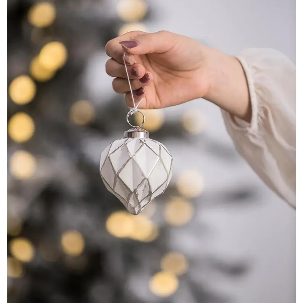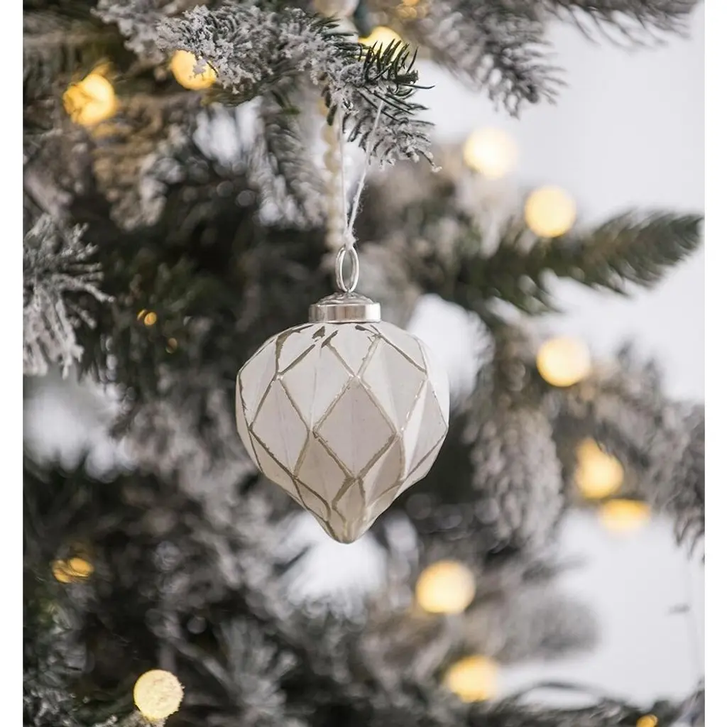 Set Of 6 Glass Hanging Ball Christmas Tree Ornaments Decorations - White