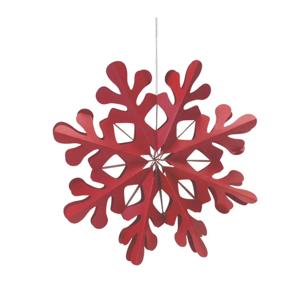 Add a touch of delicate beauty to your Christmas tree and holiday decor with our exquisite set of paper snowflake ornaments. These intricately designed snowflakes create a mesmerizing display, evoking the enchanting magic of winter. The delicate silver string hangers add a touch of elegance and ensure they will shine on your tree for seasons to come. Whether you're decorating your own home or gifting to someone special, these ornaments are guaranteed to bring smiles and add a whimsical charm to the holiday season. Product Features: 6-piece set Red snowflake ornament Perfect addition to your holiday tree decor Comes ready-to-hang on silver cords For indoor use only Dimensions: Large: 15.75"H x 15.75"W x 3.5"D Medium: 11.75"H x 11.75"W x 2.5"D Small: 7.75"H x 7.75"W x 1.5"D Material(s): paper