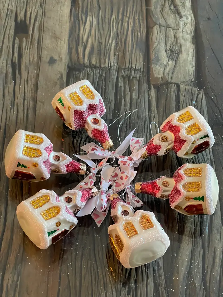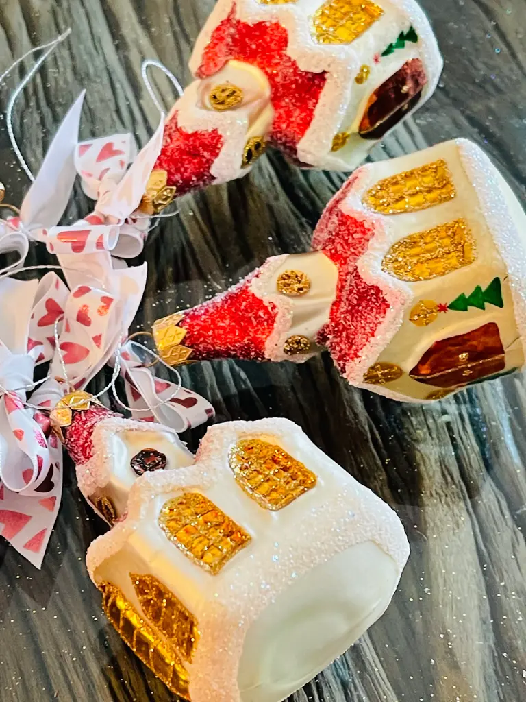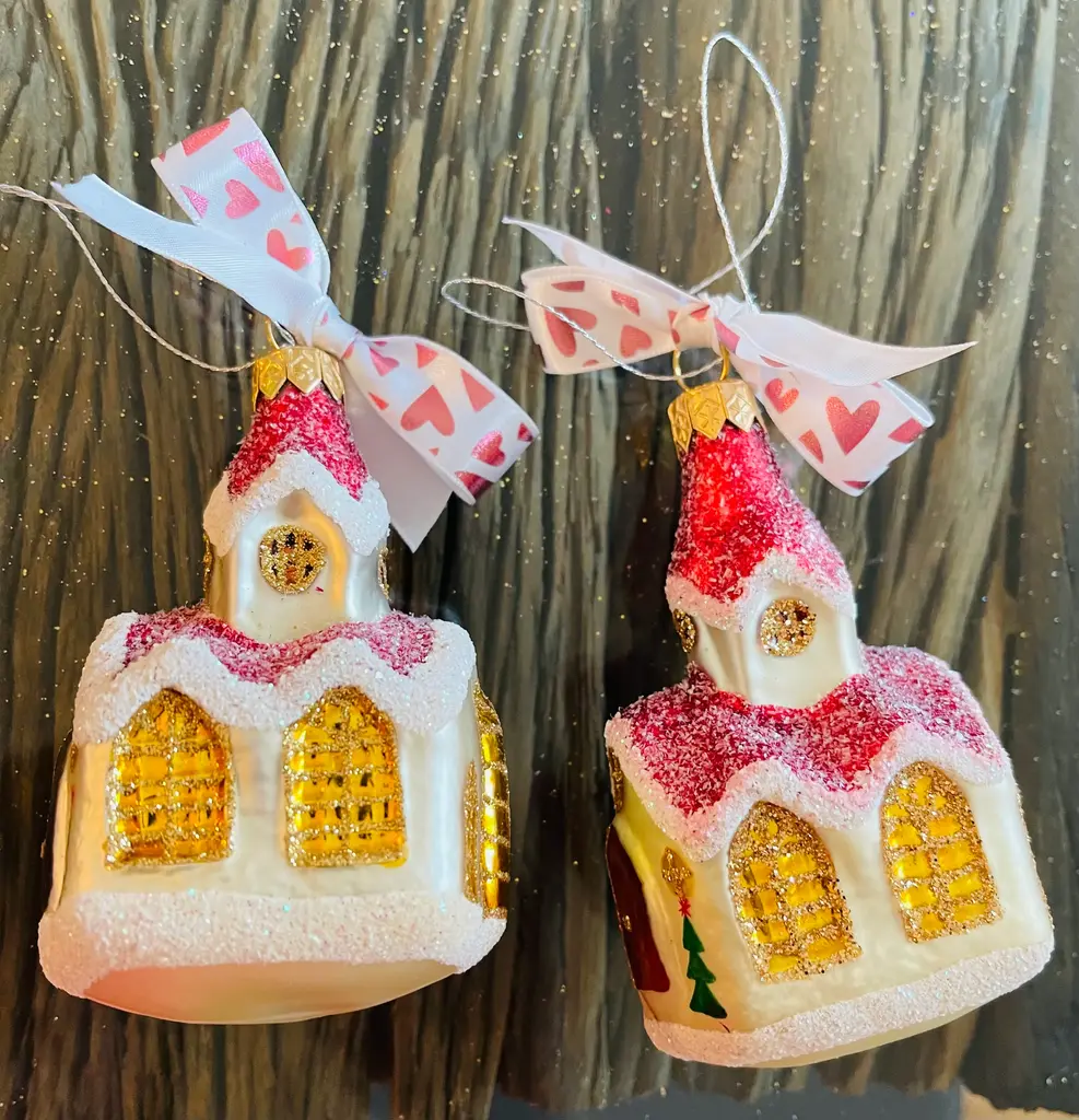 Vintage European blown glass Handpainted Christmas Ornaments. Christmas Church figurines.