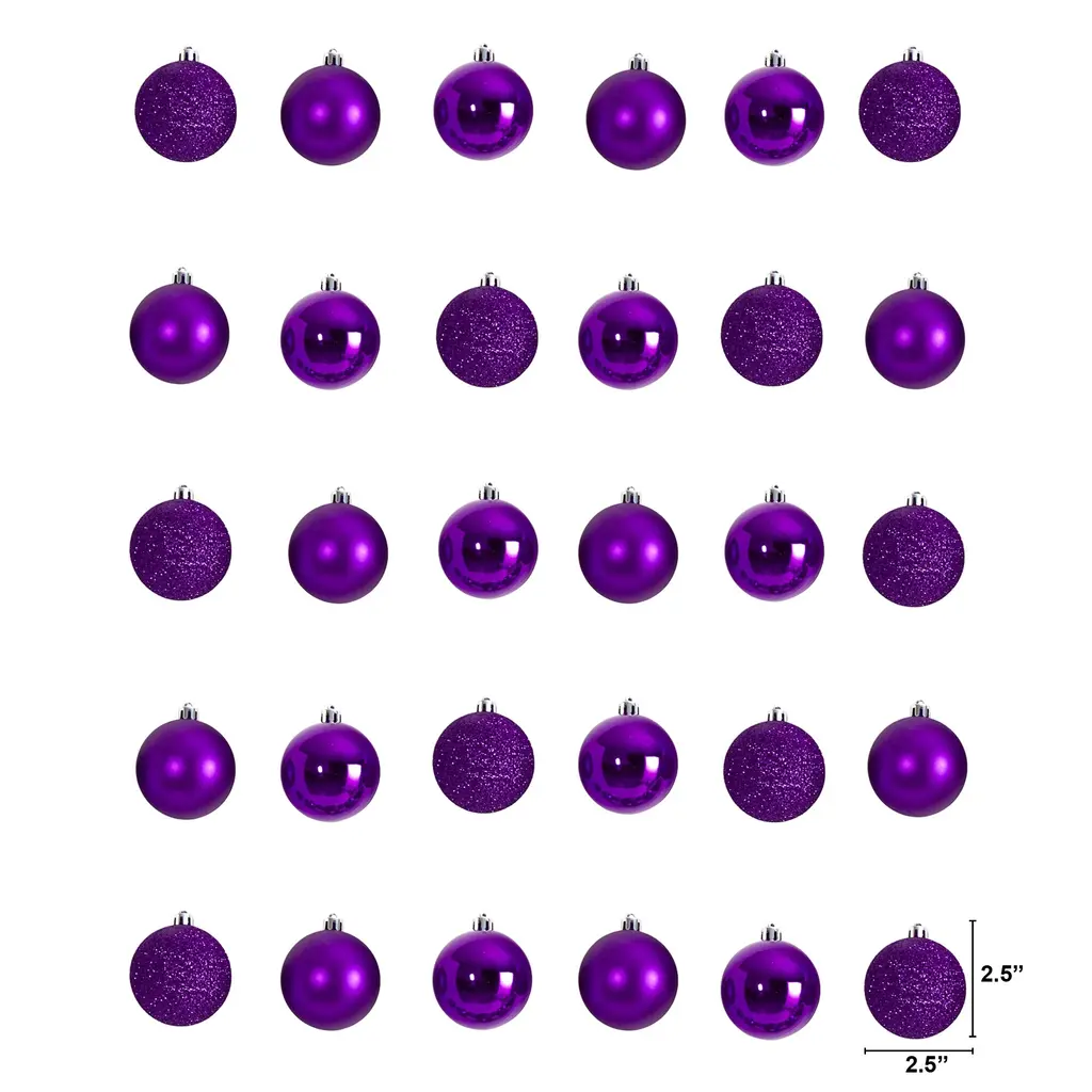 Shatterproof 3-Finish Christmas Ball Ornaments - 2.5" (60mm) Purple - 30ct - Plastic - Purple