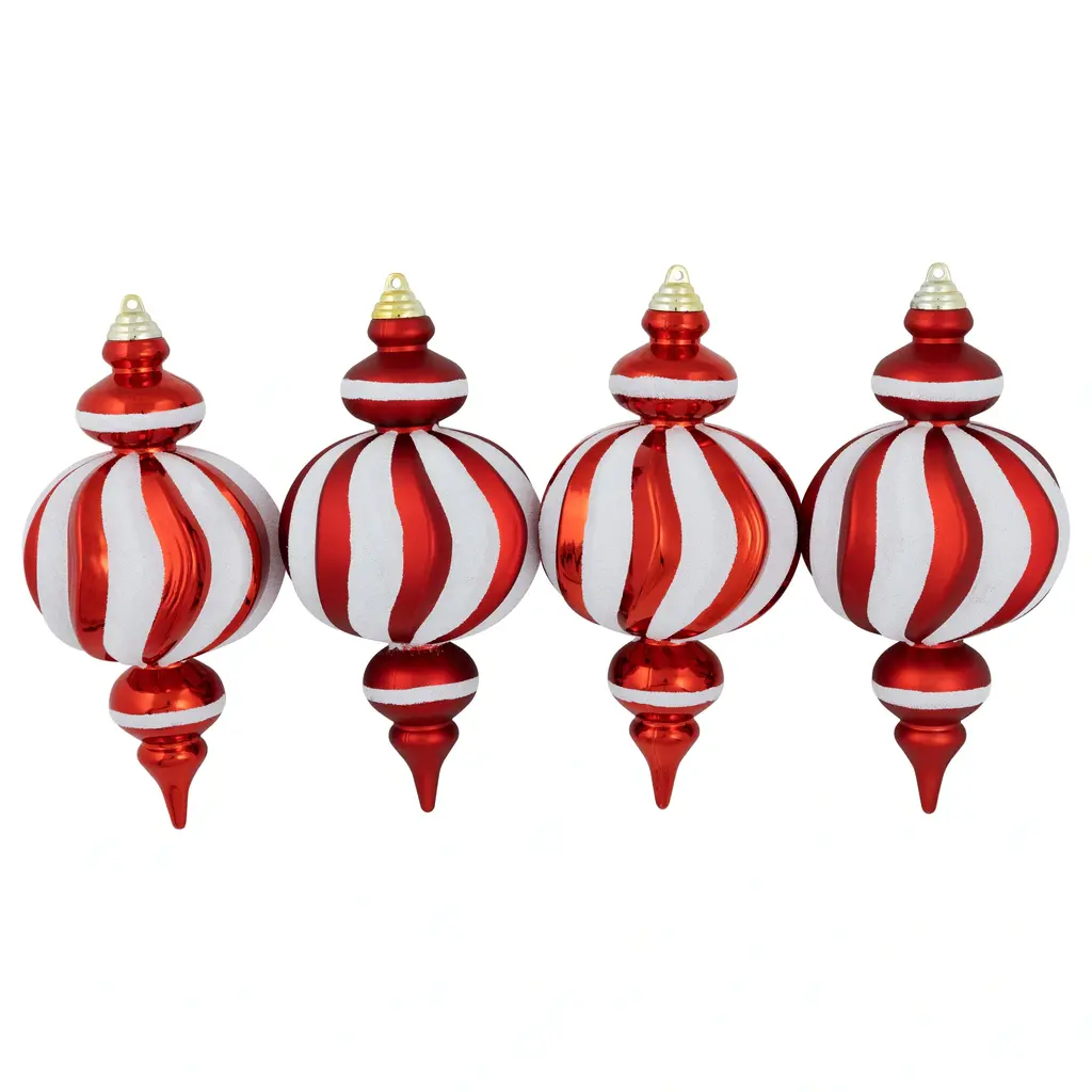 Shatterproof Commercial Size Finial Christmas Ornaments - 10" - Red And White - Set Of 4 - Plastic - Red