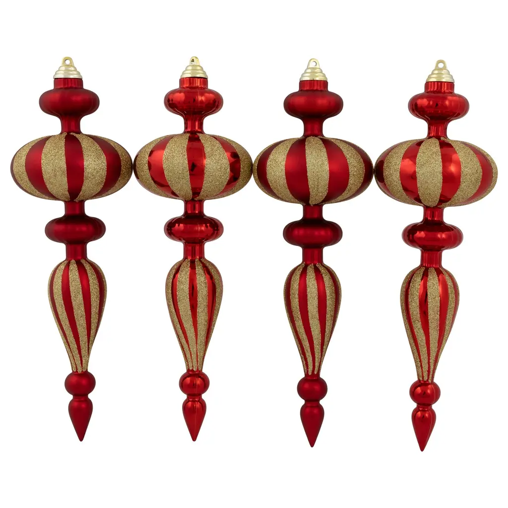 Shatterproof Commercial Size Finial Christmas Ornaments - 14" - Red And Gold - Set Of 4 - Red