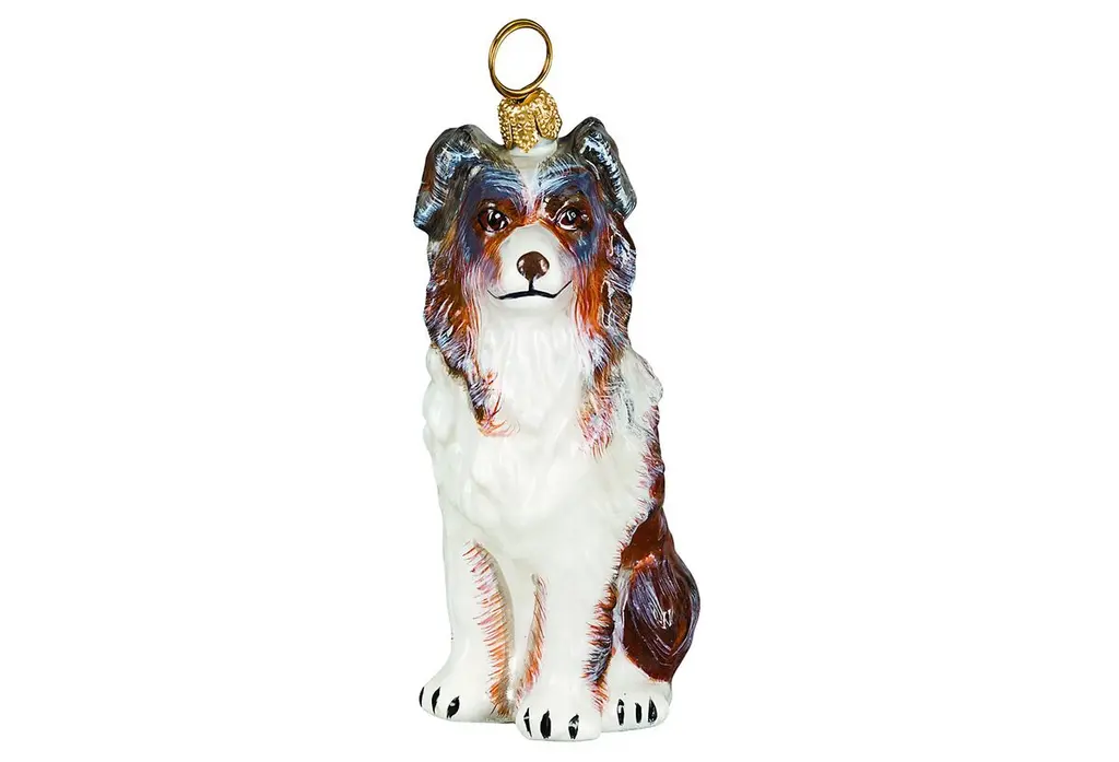 A charming addition to the tree, this Shetland Sheepdog ornament is handcrafted of mouth-blown glass and hand-painted by artisans in Poland.