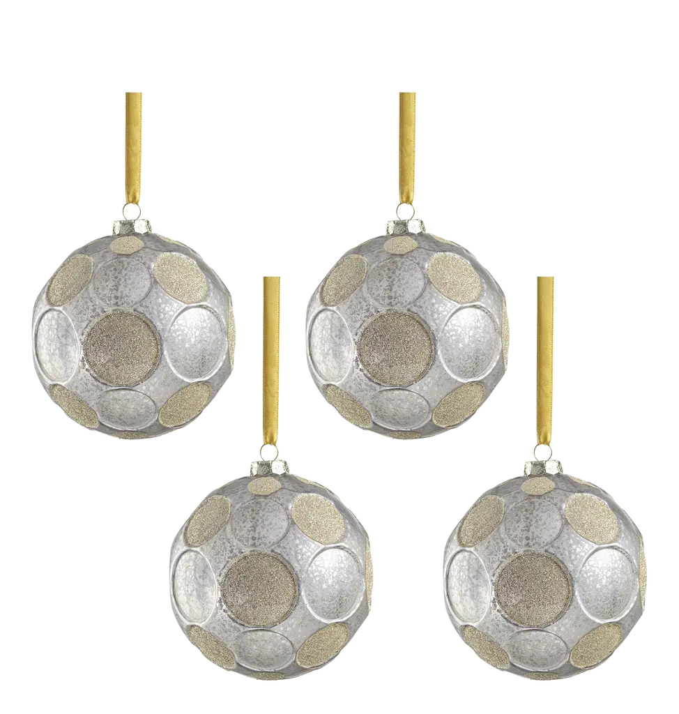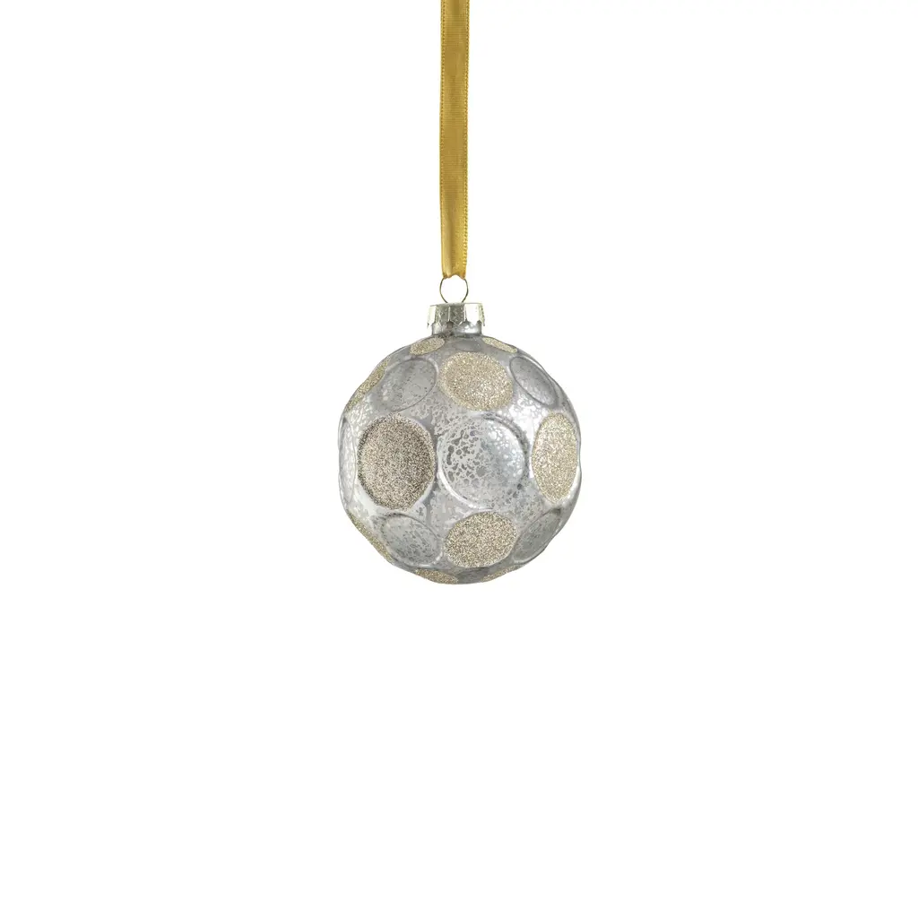 Add a touch of whimsy and elegance to your holiday decor with the Matte Frosted Serenity Glass Ball Ornaments. These enchanting ornaments are crafted to resemble speckled glass and feature a delightful polka dot design, where some dots boast a chic matte frosted finish while others sparkle with glitter. This captivating contrast creates a playful yet sophisticated look that adds depth and interest to your festive decorations. Perfect for adorning your Christmas tree or garland, these ornaments bring a unique blend of charm and glamour to your seasonal celebrations. Fun polka dot pattern. Set of 6 hanging ornaments of the same size. Matte frosted finish with glitters. Equipped with ornament cap A fun and festive addition to any holiday décor. Comes ready to hang. Clean with a soft dry cloth.