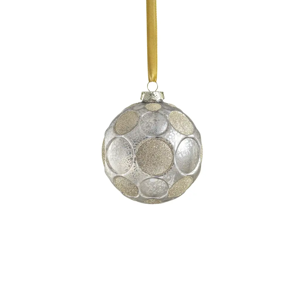 Add a touch of whimsy and elegance to your holiday decor with the Matte Frosted Serenity Glass Ball Ornaments. These enchanting ornaments are crafted to resemble speckled glass and feature a delightful polka dot design, where some dots boast a chic matte frosted finish while others sparkle with glitter. This captivating contrast creates a playful yet sophisticated look that adds depth and interest to your festive decorations. Perfect for adorning your Christmas tree or garland, these ornaments bring a unique blend of charm and glamour to your seasonal celebrations. Fun polka dot pattern. Set of 6 hanging ornaments of the same size. Matte frosted finish with glitters. Equipped with ornament cap A fun and festive addition to any holiday décor. Comes ready to hang. Clean with a soft dry cloth.