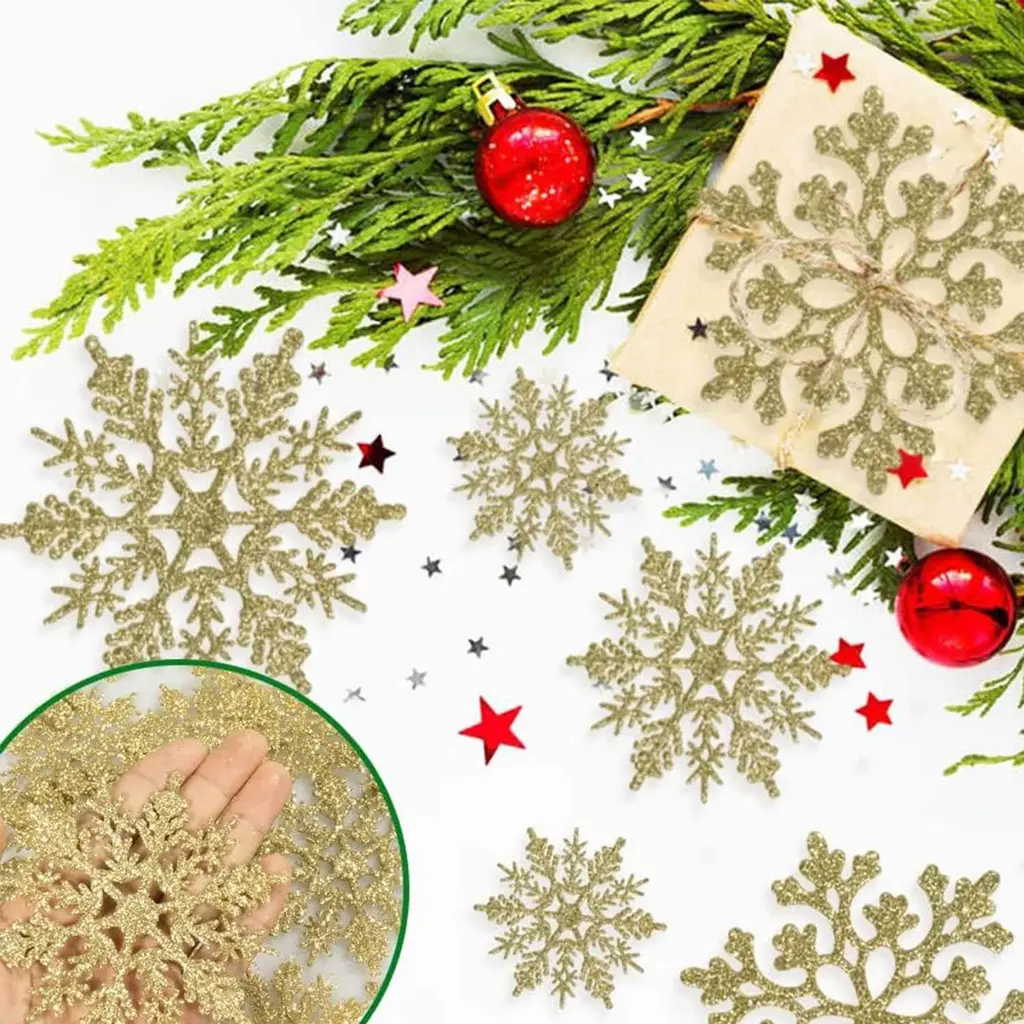 SNOWFLAKES OF VARIED SIZES: A value pack of 36pcs Christmas glitter snowflakes in 3 varied sizes and 2 different patterns: 8pcs for 4.2 inch for both styles, 10pcs for 3 inch and 10pcs for 1.8 inch. It’s a lot of snowflakes sufficient for your Christmas decorations. CHRISTMAS TREE SNOWFLAKES: Featuring sparkly glitters on the surface, these snowflakes tree ornaments add much more sparkle to your Christmas tree decorations, various sizes give a nicer variety on the tree, just let it snow. WINTER DECORATION SNOWFLAKES: These gold glitter snowflakes also look gorgeous on windows, ceiling, fireplace, etc, perfect for winter decorations. THEME BIRTHDAY DECOR: Scattering some small glitter snowflakes on table, you will find them great centerpieces for your frozen theme birthday party, winter wonderland birthday party, etc. PLASTIC CRAFT SNOWFLAKES: These gold snowflakes are absolutely ideal for art craft project like decorating Christmas card, gift package, home decoration or anything you could think of. STURDY SNOWFLAKES: The glittery gold snowflake ornaments are well made of hard plastic with sparkly glitter, gorgeous and reusable, save it for further use. DESIGNED TO HANG: Big Christmas snowflake ornaments have hole at top for easy hanging except some that are only with the hollow design but they're also able to be hung easily with the string included.