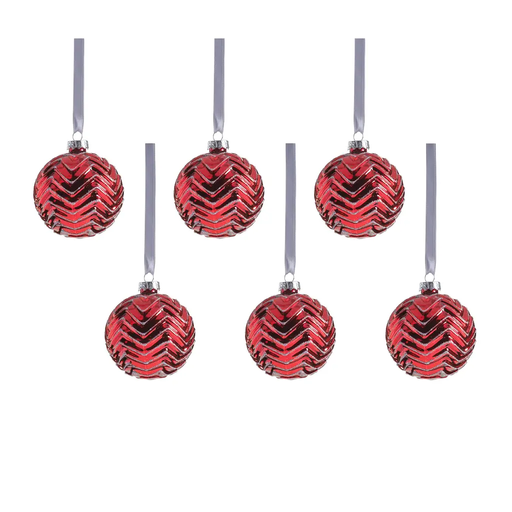 Snowflake Glass Ball Ornament (Set Of 6) - Red
