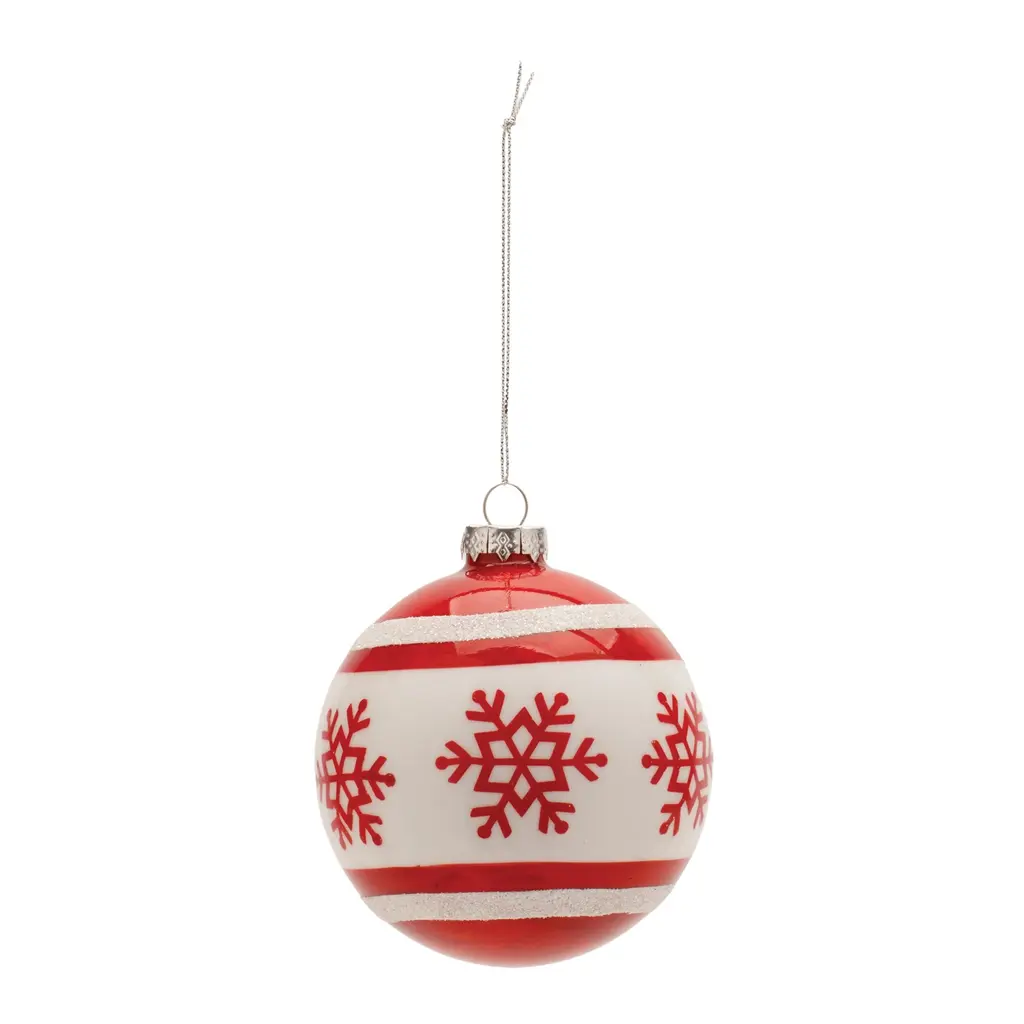 Adorn your Christmas tree with this stunning set of Glass Ball Ornaments. Featuring 12 pieces, the festive red and white tones paired with the traditional snowflake design is the perfect combination to create a memorable display. The quality glass composition with delicate string hanger is sure to endure for seasons to come. Whether you're adding a touch of cheer to your home or gifting to a loved one, these ornaments will definitely bring holiday spirit to your home.